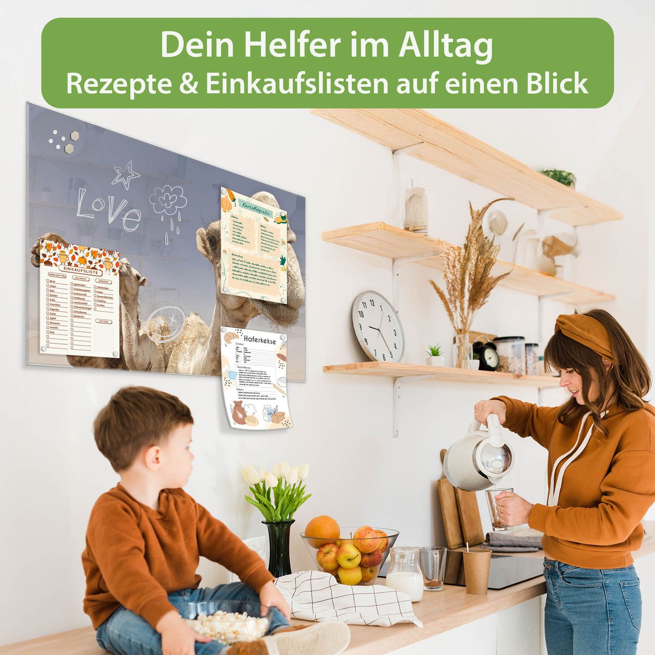 Ein Stück Design, das Ihren Alltag organisiert. Schreiben, heften, inspirieren - alles an einem Ort. Qualität, die man spürt. Montage leicht gemacht. Handwerk mit Herz - veredelt in Sachsen. Einzigartiges Design mit Motiv Motiv Kamele Beschreibbare Glasoberfläche, leicht zu reinigen Starke Magnetkraft durch Stahlrückwand Inklusive 4 Neodym-Magneten Flexible Montageoptionen Handveredelt in Sachsen - Qualität, die bleibt