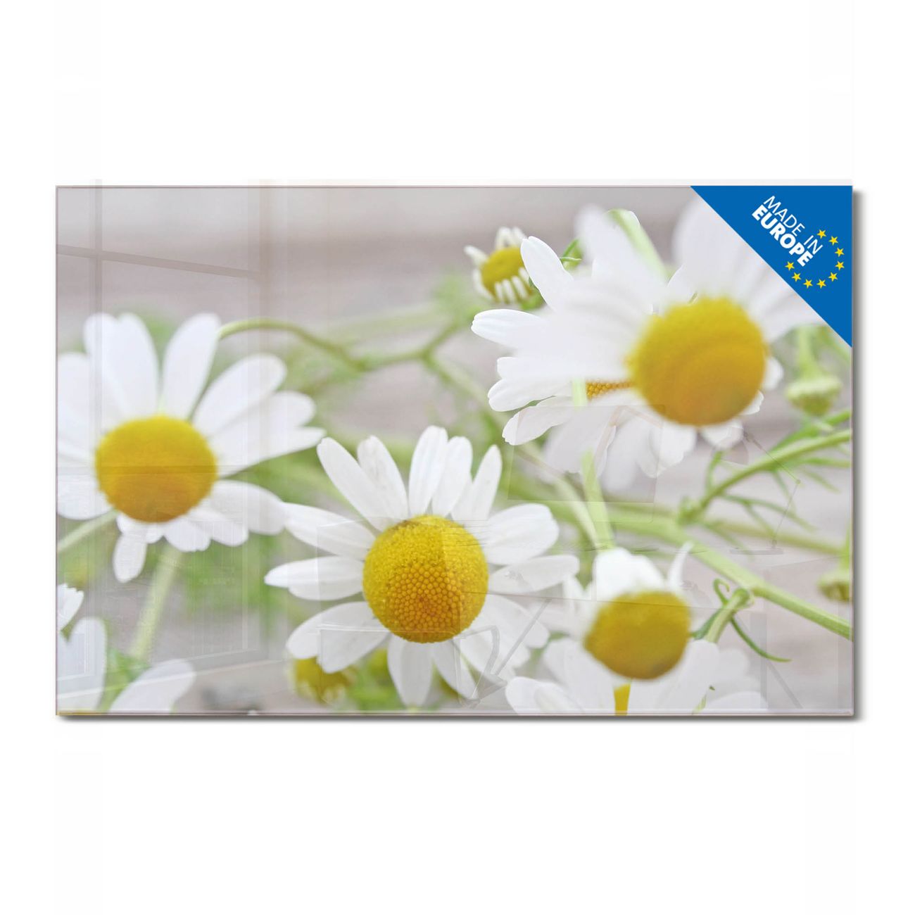 Glas Magnettafel im Querformat Motiv Kamillenblüten