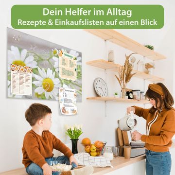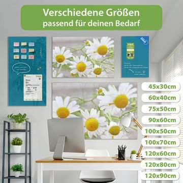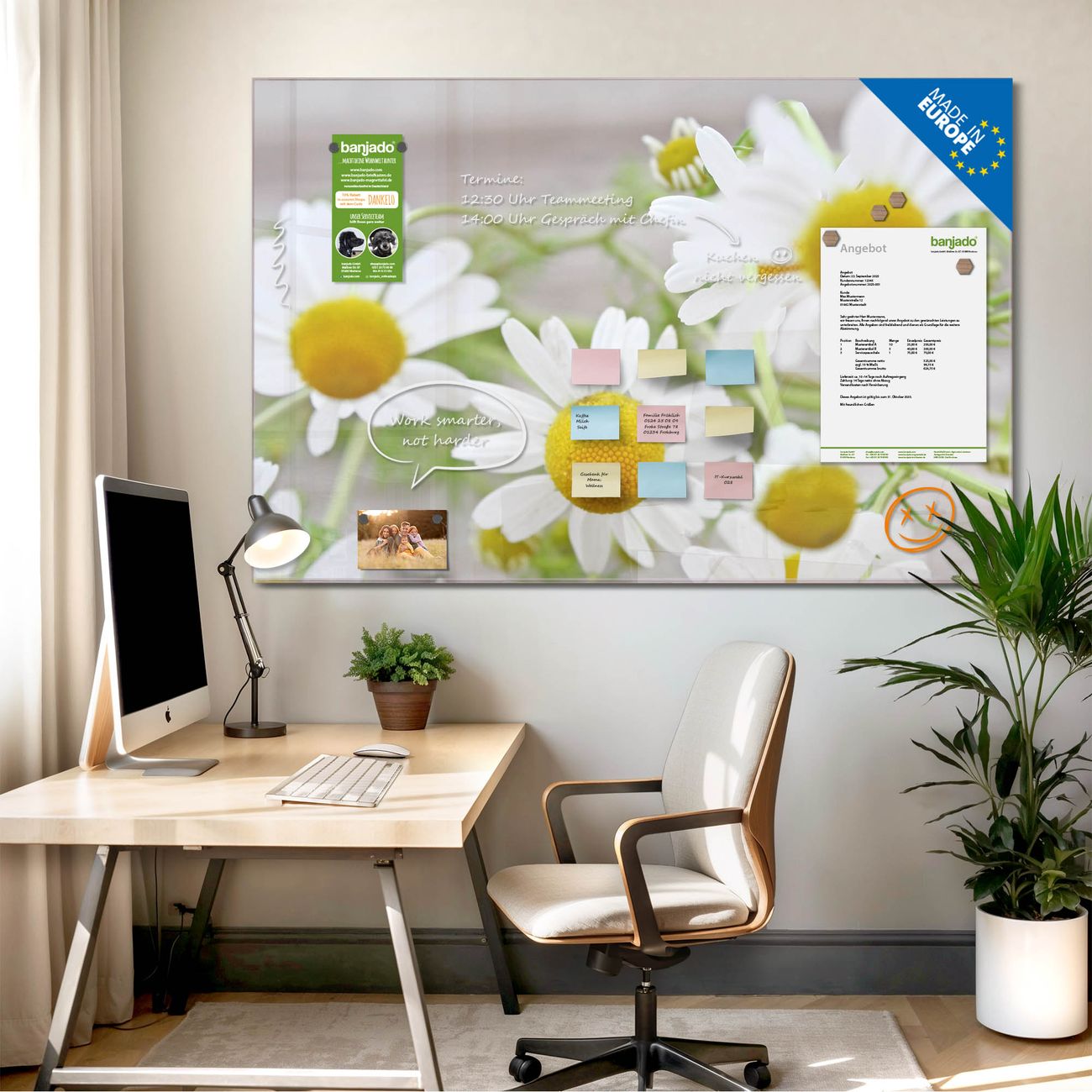 Die banjado Glas Magnettafel mit dem Motiv Motiv Kamillenblüten verbindet Funktionalität mit Stil. Sie ersetzt das Zettelchaos durch klare Strukturen und bringt dabei eine warme, natürliche Atmosphäre in Ihr Zuhause. Ob im Büro, in der Küche oder im Eingangsbereich - dieses Design-Board zieht Blicke an und sorgt für Ordnung mit Charakter.
