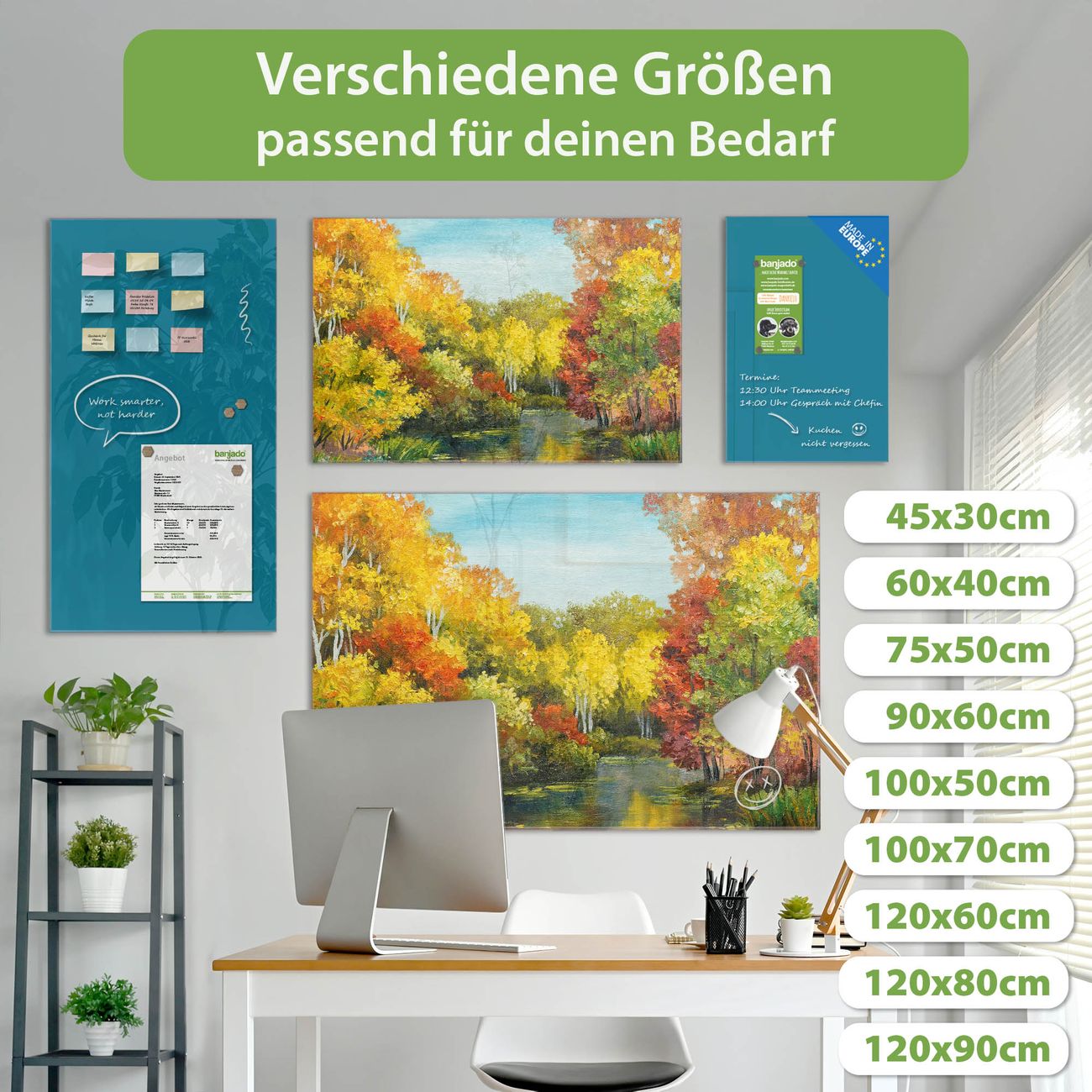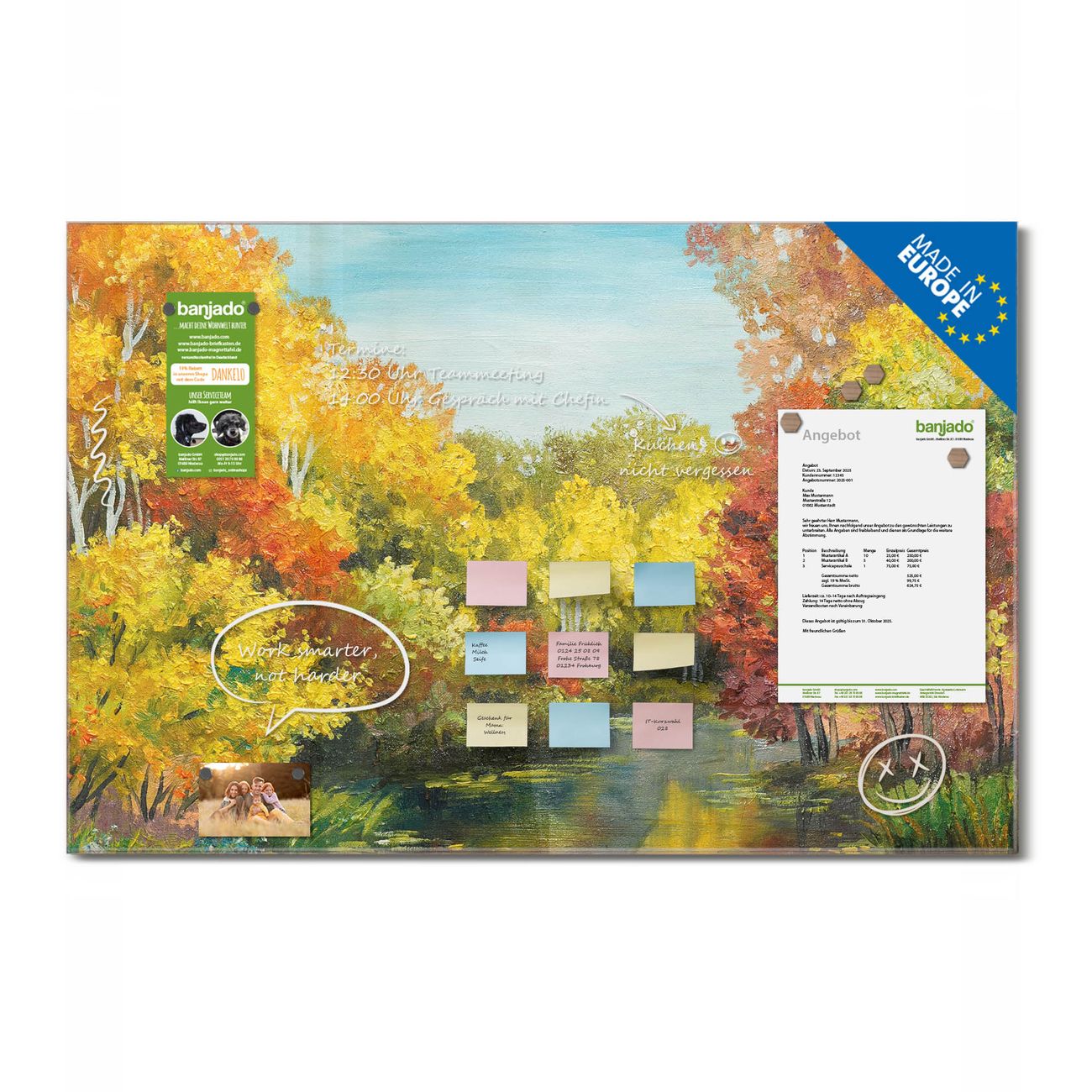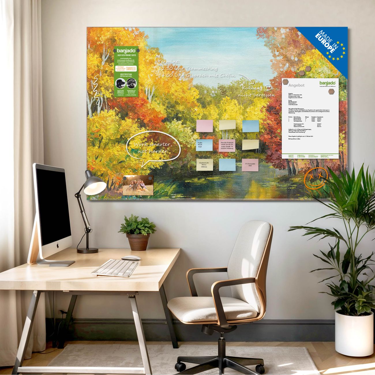 Die banjado Glas Magnettafel mit dem Motiv Motiv Kanal Im Herbst verbindet Funktionalität mit Stil. Sie ersetzt das Zettelchaos durch klare Strukturen und bringt dabei eine warme, natürliche Atmosphäre in Ihr Zuhause. Ob im Büro, in der Küche oder im Eingangsbereich - dieses Design-Board zieht Blicke an und sorgt für Ordnung mit Charakter.