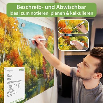 Auf der glatten Glasoberfläche lassen sich Termine, Rezepte oder Notizen ganz einfach mit Kreidestiften festhalten und rückstandslos entfernen. Starke Neodym-Magnete halten Ihre wichtigsten Erinnerungen sicher an Ort und Stelle. So entsteht Ihre ganz persönliche Ideenwand - jeden Tag neu.