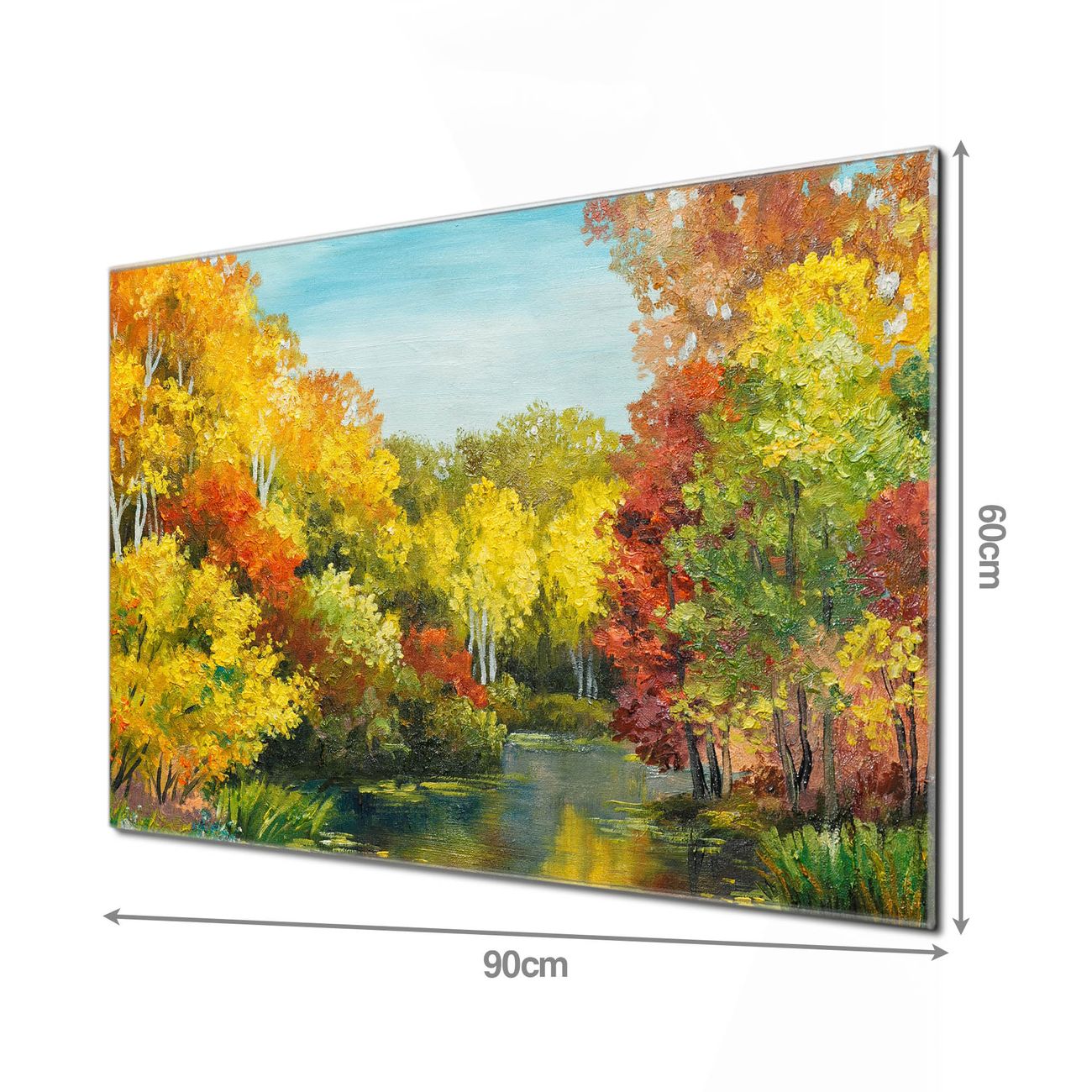 Material: 4mm Sicherheitsglas mit Metallrückwand Eigenschaften: beschreibbar, magnetisch, kratzfest Maße: 90x60x0,6cm, 8,10kg schwer Motiv Nummer 12354 Kanal Im Herbst Zubehör: inklusive 4 Neodym-Magnete
