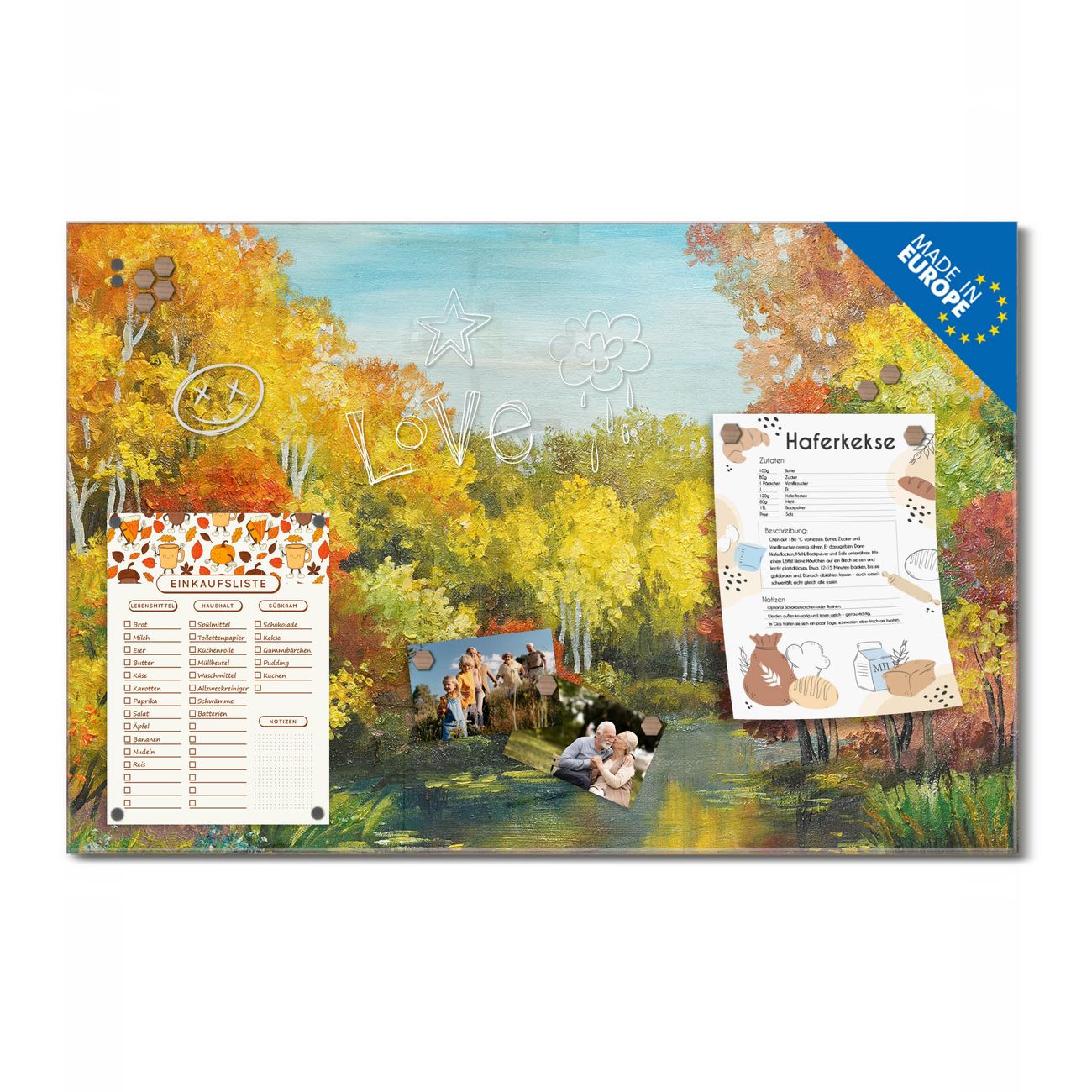 Die banjado Glas Magnettafel mit dem Motiv Motiv Kanal Im Herbst verbindet Funktionalität mit Stil. Sie ersetzt das Zettelchaos durch klare Strukturen und bringt dabei eine warme, natürliche Atmosphäre in Ihr Zuhause. Ob im Büro, in der Küche oder im Eingangsbereich - dieses Design-Board zieht Blicke an und sorgt für Ordnung mit Charakter.