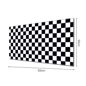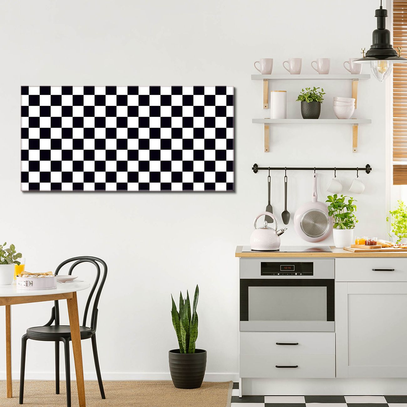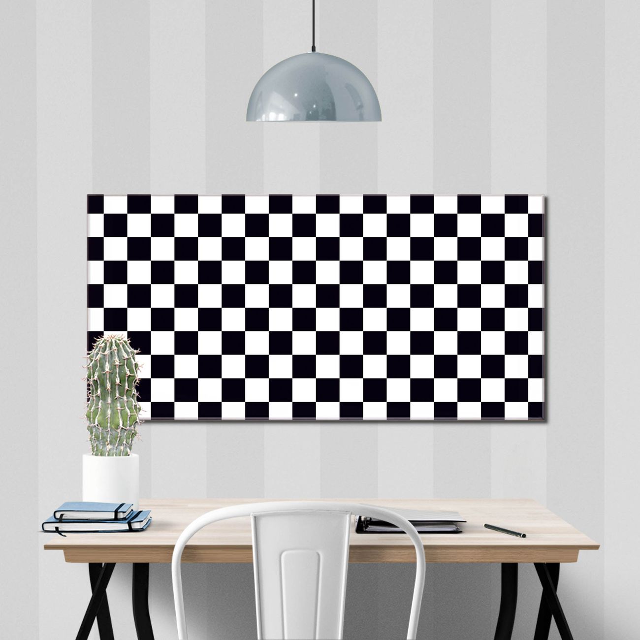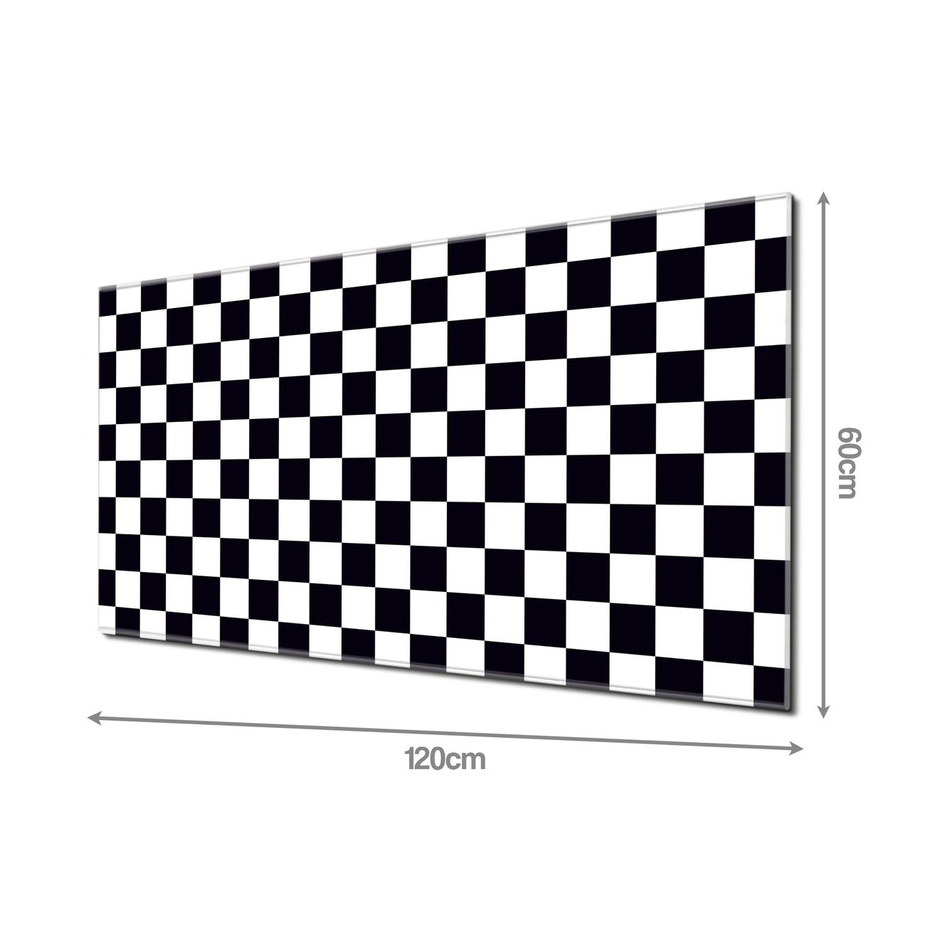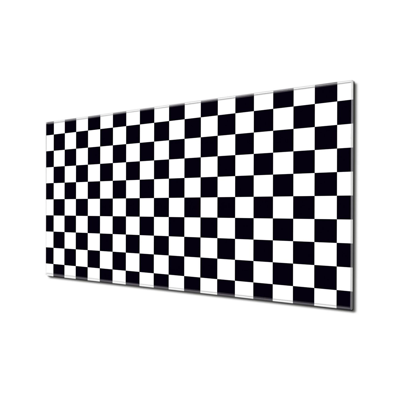 Material: 4mm Sicherheitsglas mit Metallrückwand Eigenschaften: beschreibbar, magnetisch, kratzfest Maße: 120x60x0,6cm, 10,80kg schwer Motiv Nummer 10608 Karo Schwarz Zubehör: inklusive 4 Neodym-Magnete