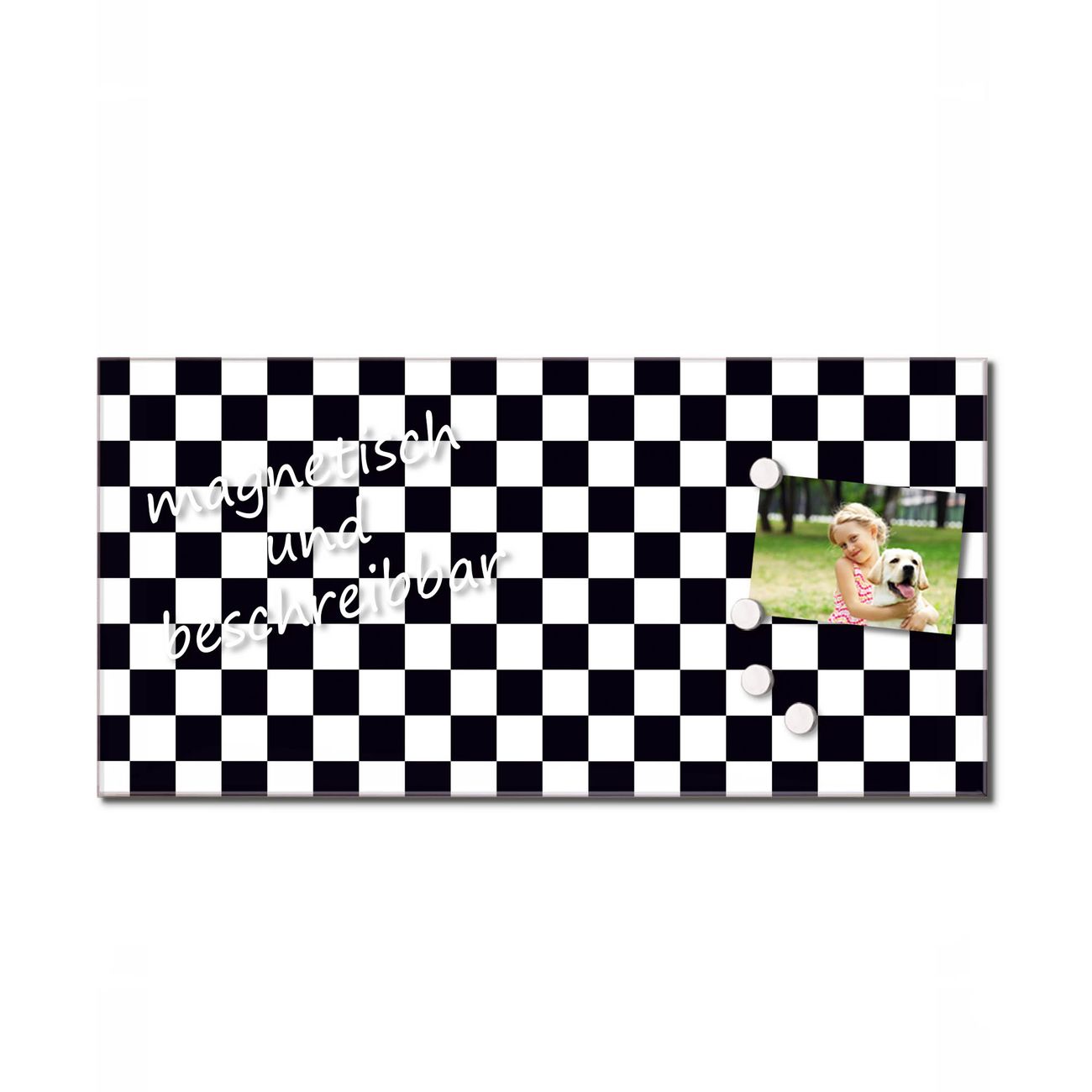 Glas Magnettafel im Querformat Motiv Karo Schwarz