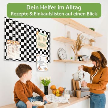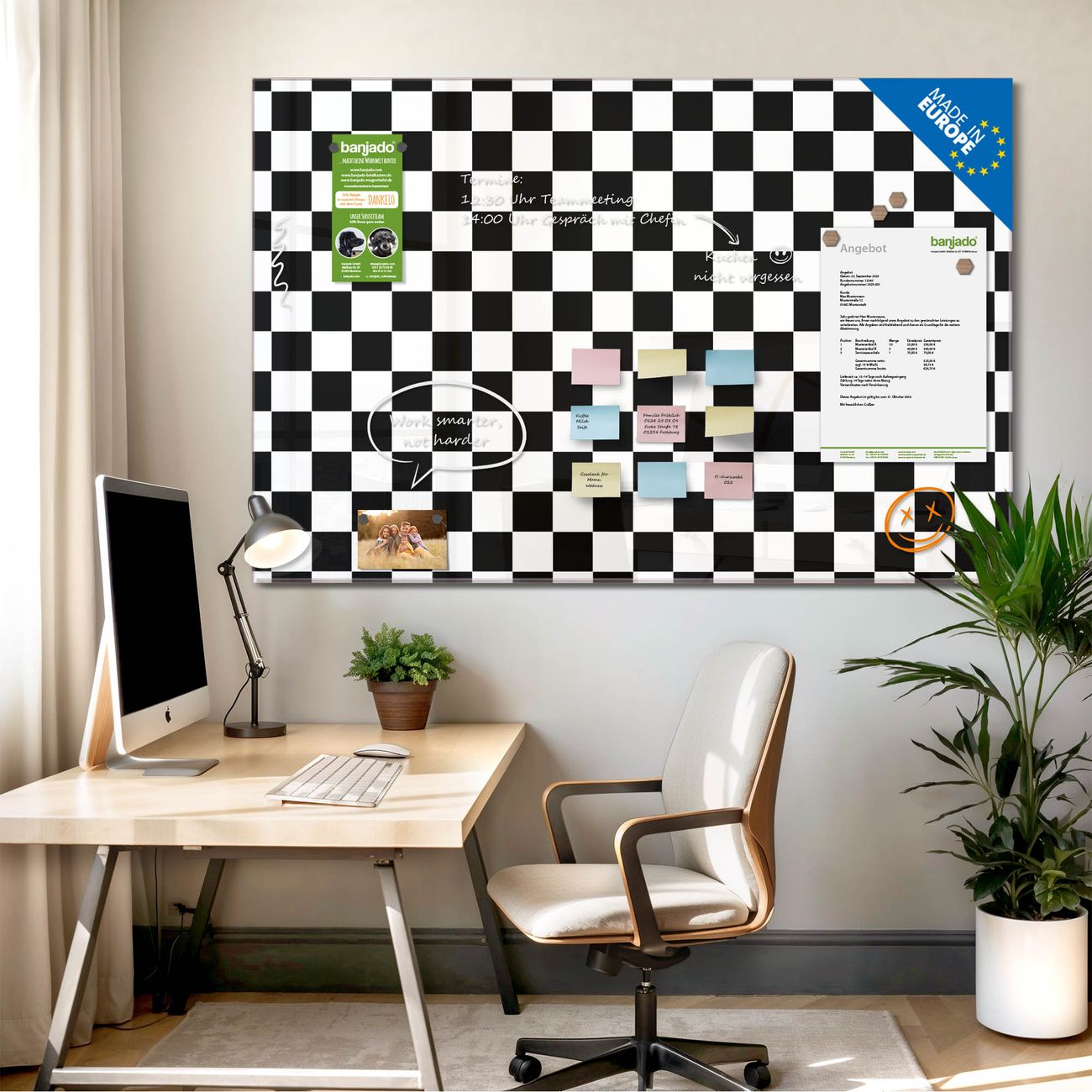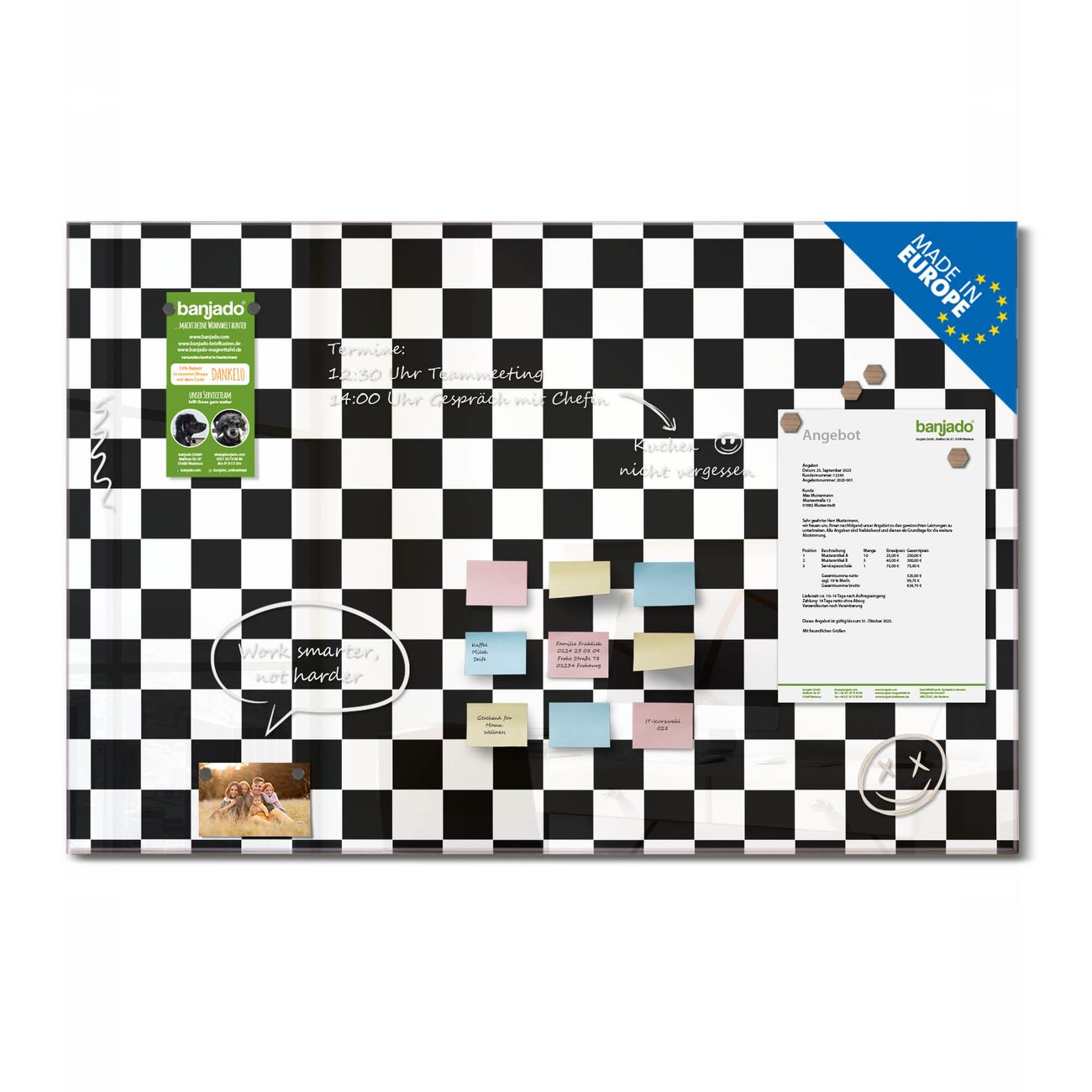 Glas Magnettafel im Querformat Motiv Karo Schwarz