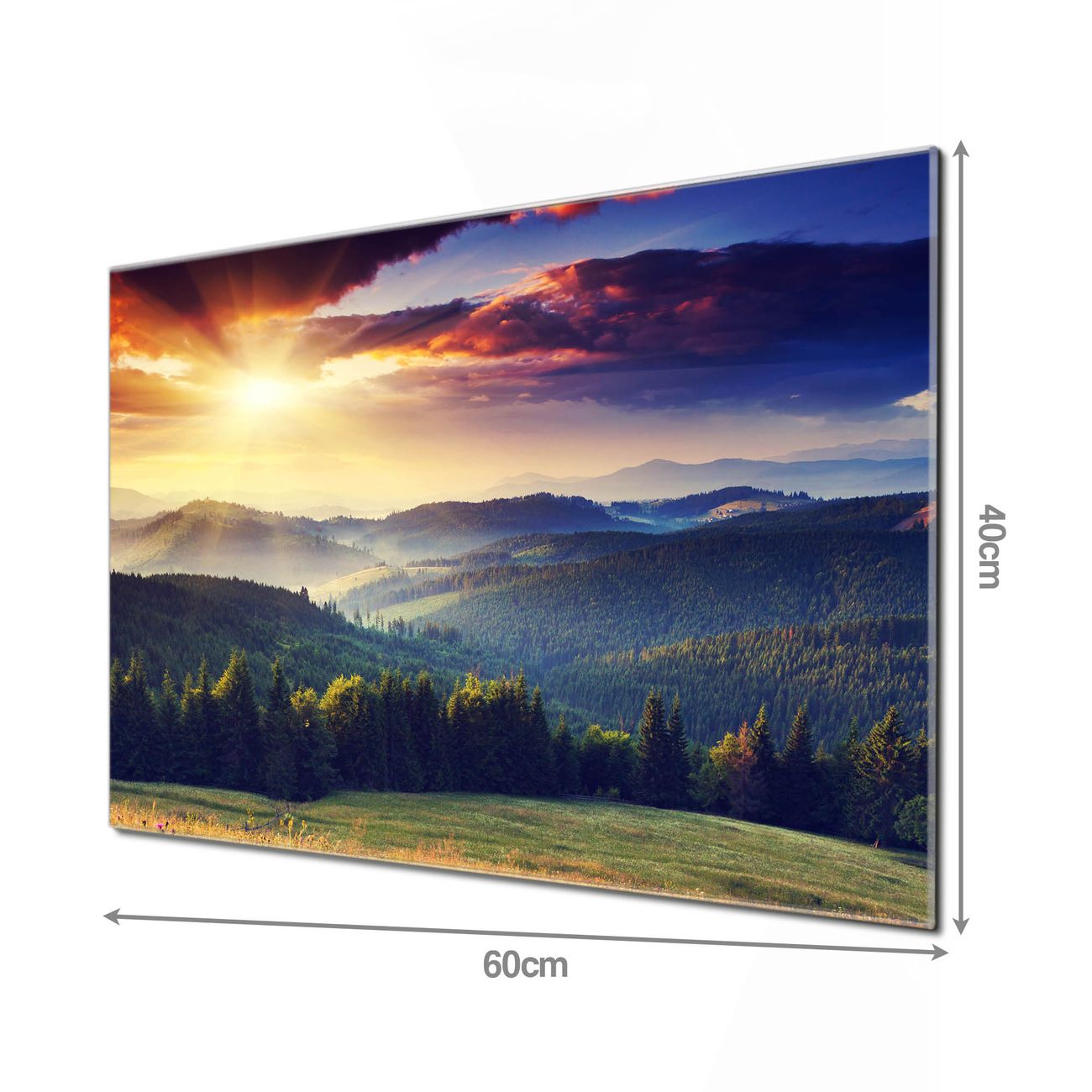 Material: 4mm Sicherheitsglas mit Metallrückwand Eigenschaften: beschreibbar, magnetisch, kratzfest Maße: 60x40x0,6cm, 3,6kg schwer Motiv Nummer 12313 Karpaten Sonnenuntergang Zubehör: inklusive 4 Neodym-Magnete