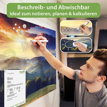 Das Magnetboard besteht aus gehärtetem Glas, die Rückwand aus einem magnetischen Stahlblech. Durch die superflache Bauweise haben Sie die Wahl aus einer Vielzahl von Befestigungsmöglichkeiten. Sie können die Magnettafel mit einem Montagekleber superflach an die Wand kleben oder Sie wählen eines unserer passenden Befestigungssets, welches eine optimale Montage garantiert. Die Magnetwand besteht aus zertifiziertem Sicherheitsglas. Durch die mitgelieferten 4 Neodym-Magnete ist Ihre Glas Magnettafel sofort einsatzbereit. Wichtige Notizen und Informationen können Sie einfach mit Kreidestiften auf die Glasmagnettafel schreiben und rückstandslos wieder entfernen.