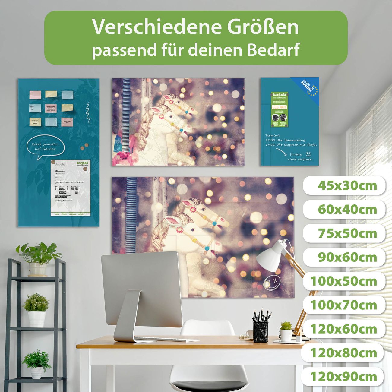 Die banjado Glas Magnettafel im Querformat mit Motiv Motiv Kinderkarussell bringt Ordnung in Ihr Zettelchaos. Fotos, Termine, Notizen oder Rezepte lassen Sich hier stilvoll mit Magneten ordnen, so behalten Sie alles Wichtige im Blick. Das Memoboard aus Glas ist beschreibbar und wird Ihnen bereits mit 4 Neodym-Magneten geliefert. Das Format bietet Ihnen ausreichend Platz um alle wichtigen Informationen im Blick zu behalten.
