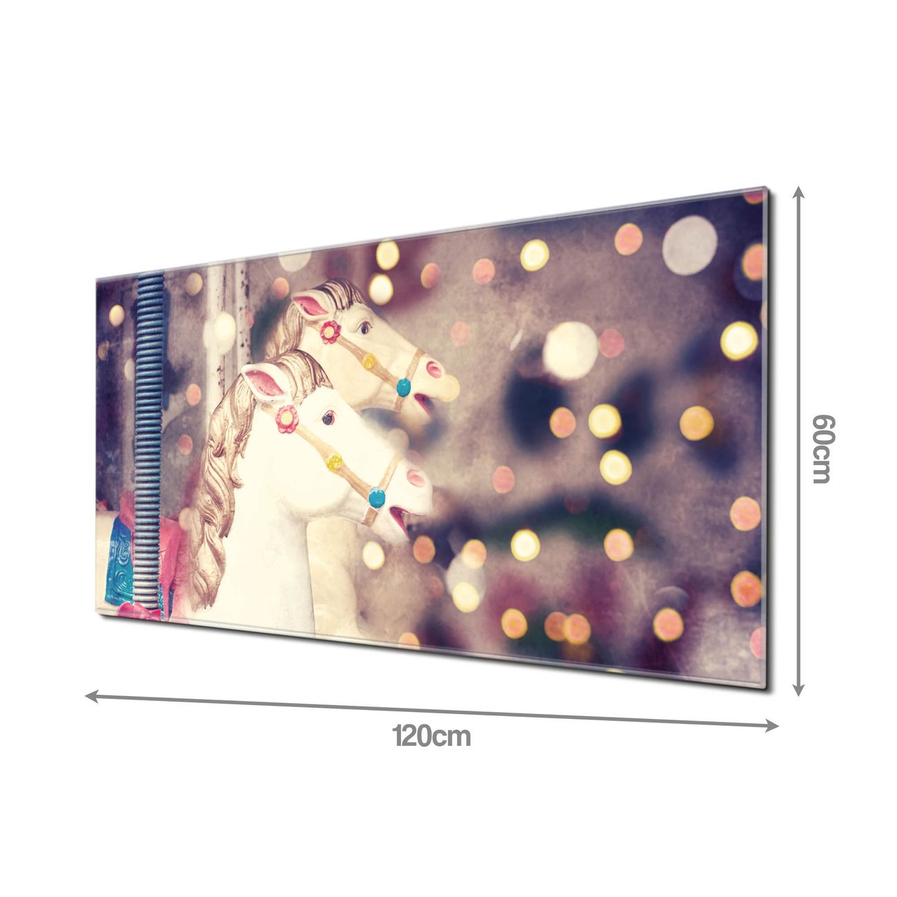 Material: 4mm Sicherheitsglas mit Metallrückwand Eigenschaften: beschreibbar, magnetisch, kratzfest Maße: 120x60x0,6cm, 10,80kg schwer Motiv Nummer 12493 Kinderkarussell Zubehör: inklusive 4 Neodym-Magnete