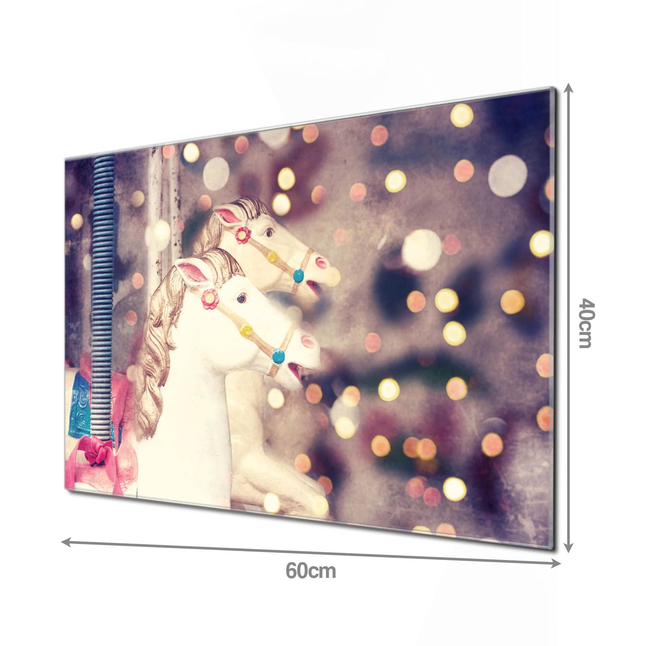 Material: 4mm Sicherheitsglas mit Metallrückwand Eigenschaften: beschreibbar, magnetisch, kratzfest Maße: 60x40x0,6cm, 3,6kg schwer Motiv Nummer 12493 Kinderkarussell Zubehör: inklusive 4 Neodym-Magnete