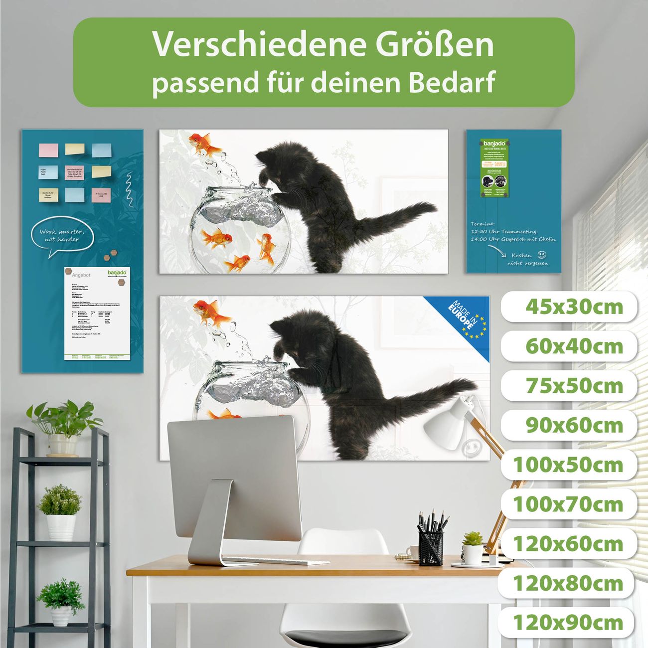 Jede Glas Magnettafel wird in unserer Werkstatt von Hand gefertigt und sorgfältig geprüft. So erhalten Sie ein echtes Qualitätsprodukt, das Funktion und Ästhetik perfekt vereint.?? Warum banjado?
