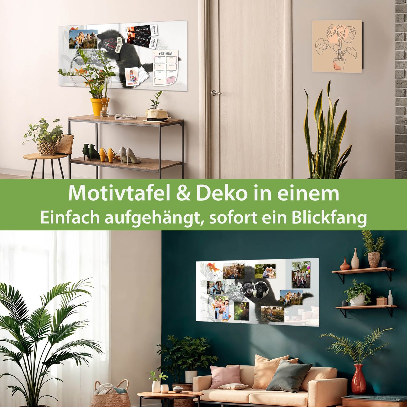 Dank der flachen Bauweise wirkt die Magnetwand fast schwebend an der Wand. Sie können sie mit Montagekleber elegant befestigen oder mit einem passenden Set klassisch verschrauben - beides sorgt für sicheren Halt und eine dezente Optik.