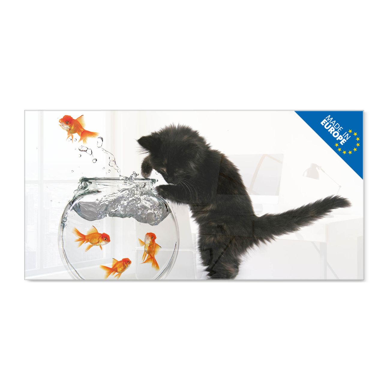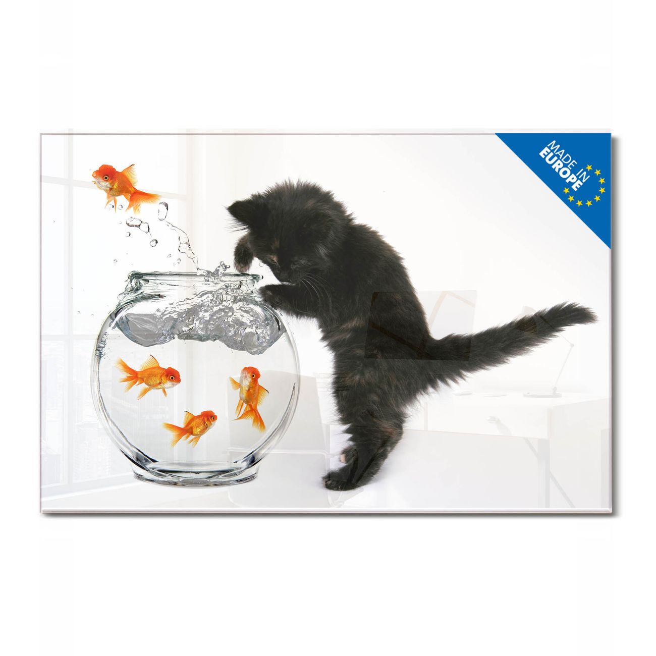 Glas Magnettafel im Querformat Motiv Katze Und Fisch