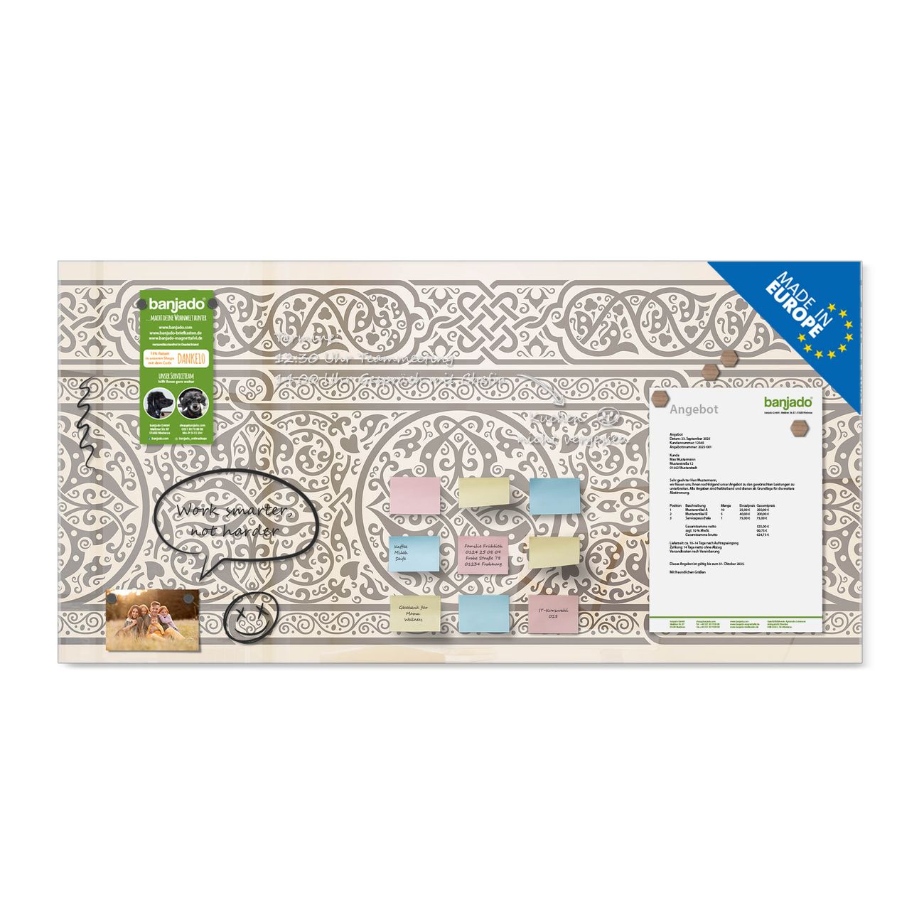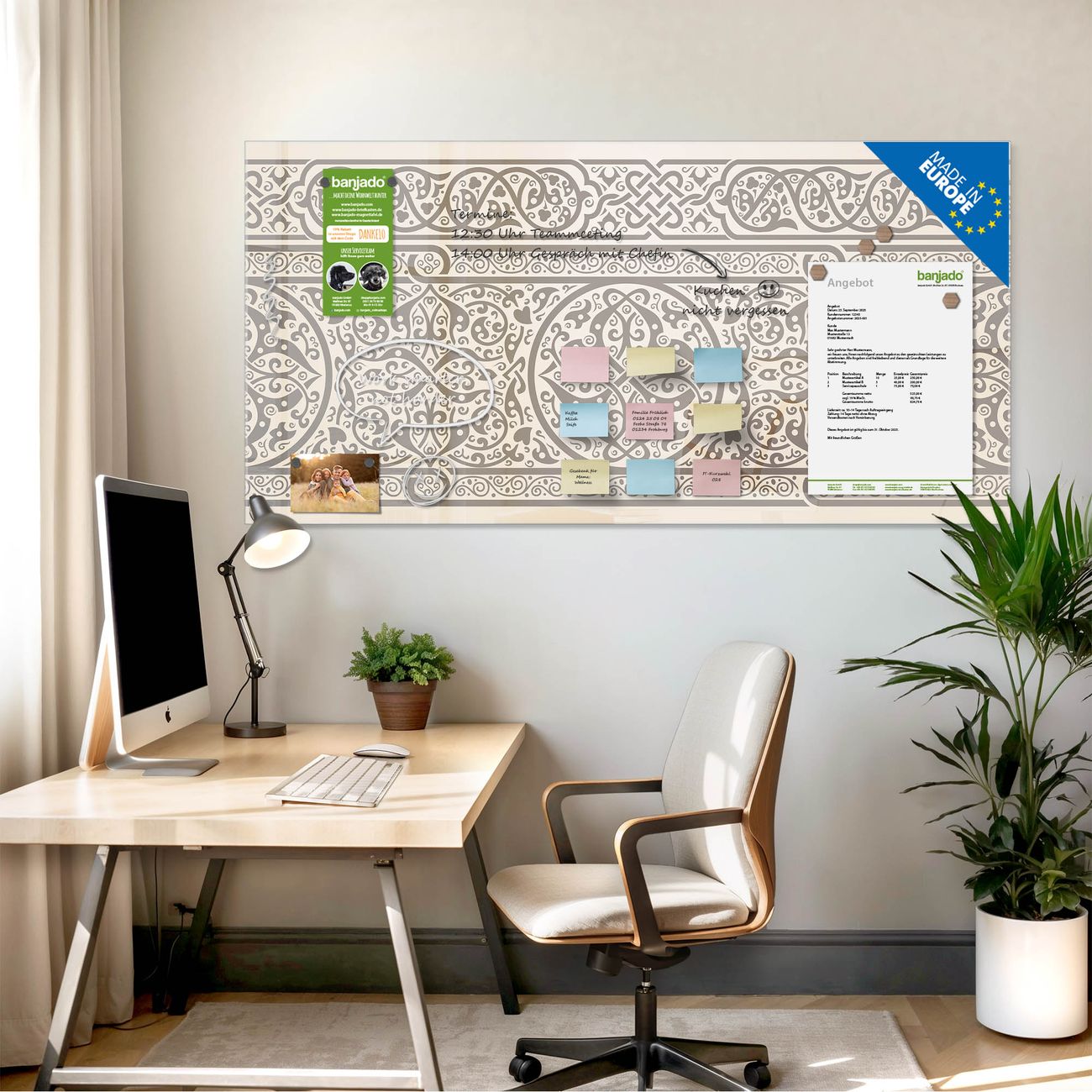 Die banjado Glas Magnettafel mit dem Motiv Motiv Keltischer Knoten verbindet Funktionalität mit Stil. Sie ersetzt das Zettelchaos durch klare Strukturen und bringt dabei eine warme, natürliche Atmosphäre in Ihr Zuhause. Ob im Büro, in der Küche oder im Eingangsbereich - dieses Design-Board zieht Blicke an und sorgt für Ordnung mit Charakter.