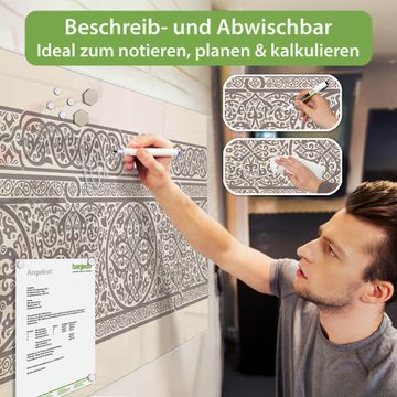 Auf der glatten Glasoberfläche lassen sich Termine, Rezepte oder Notizen ganz einfach mit Kreidestiften festhalten und rückstandslos entfernen. Starke Neodym-Magnete halten Ihre wichtigsten Erinnerungen sicher an Ort und Stelle. So entsteht Ihre ganz persönliche Ideenwand - jeden Tag neu.