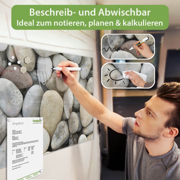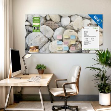 Die banjado Glas Magnettafel mit dem Motiv Motiv Kieselsteine verbindet Funktionalität mit Stil. Sie ersetzt das Zettelchaos durch klare Strukturen und bringt dabei eine warme, natürliche Atmosphäre in Ihr Zuhause. Ob im Büro, in der Küche oder im Eingangsbereich - dieses Design-Board zieht Blicke an und sorgt für Ordnung mit Charakter.
