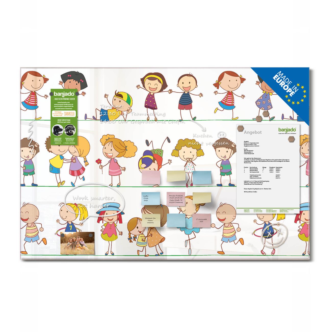 Ein Stück Design, das Ihren Alltag organisiert. Schreiben, heften, inspirieren - alles an einem Ort. Qualität, die man spürt. Montage leicht gemacht. Handwerk mit Herz - veredelt in Sachsen. Einzigartiges Design mit Motiv Motiv Kinder Beschreibbare Glasoberfläche, leicht zu reinigen Starke Magnetkraft durch Stahlrückwand Inklusive 4 Neodym-Magneten Flexible Montageoptionen Handveredelt in Sachsen - Qualität, die bleibt