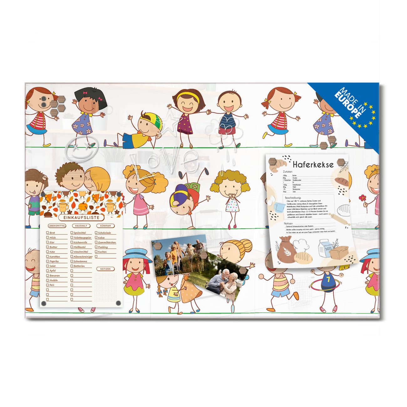 Ein Stück Design, das Ihren Alltag organisiert. Schreiben, heften, inspirieren - alles an einem Ort. Qualität, die man spürt. Montage leicht gemacht. Handwerk mit Herz - veredelt in Sachsen. Einzigartiges Design mit Motiv Motiv Kinder Beschreibbare Glasoberfläche, leicht zu reinigen Starke Magnetkraft durch Stahlrückwand Inklusive 4 Neodym-Magneten Flexible Montageoptionen Handveredelt in Sachsen - Qualität, die bleibt