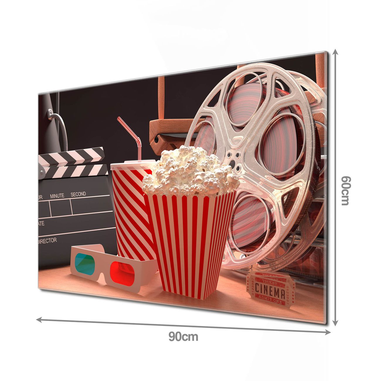 Material: 4mm Sicherheitsglas mit Metallrückwand Eigenschaften: beschreibbar, magnetisch, kratzfest Maße: 90x60x0,6cm, 8,10kg schwer Motiv Nummer 10562 Kino Zubehör: inklusive 4 Neodym-Magnete