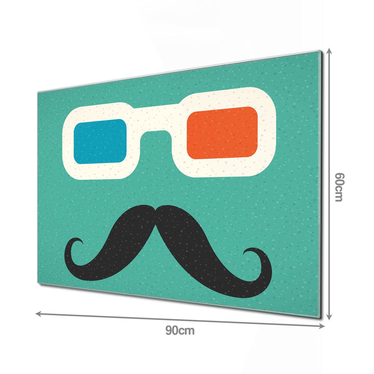 Material: 4mm Sicherheitsglas mit Metallrückwand Eigenschaften: beschreibbar, magnetisch, kratzfest Maße: 90x60x0,6cm, 8,10kg schwer Motiv Nummer 12500 Kinobrille Zubehör: inklusive 4 Neodym-Magnete