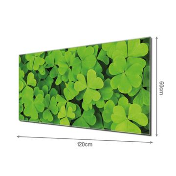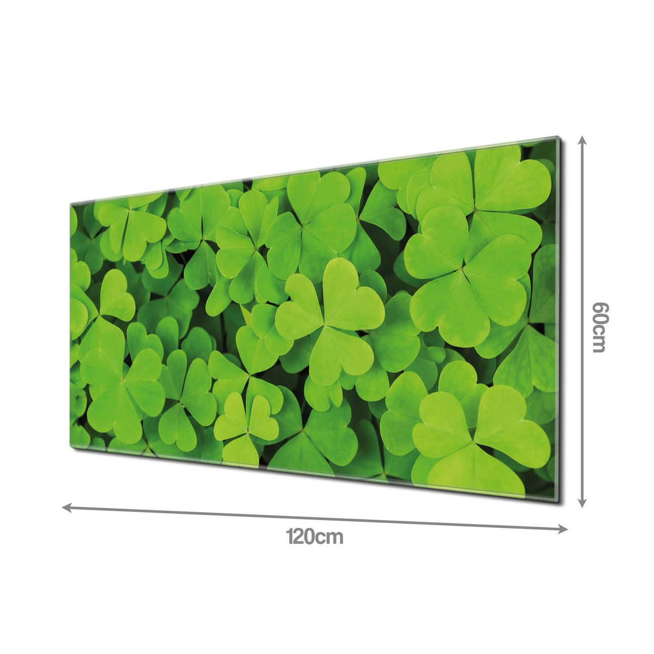 Material: 4mm Sicherheitsglas mit Metallrückwand Eigenschaften: beschreibbar, magnetisch, kratzfest Maße: 120x60x0,6cm, 10,80kg schwer Motiv Nummer 10049 Klee Zubehör: inklusive 4 Neodym-Magnete