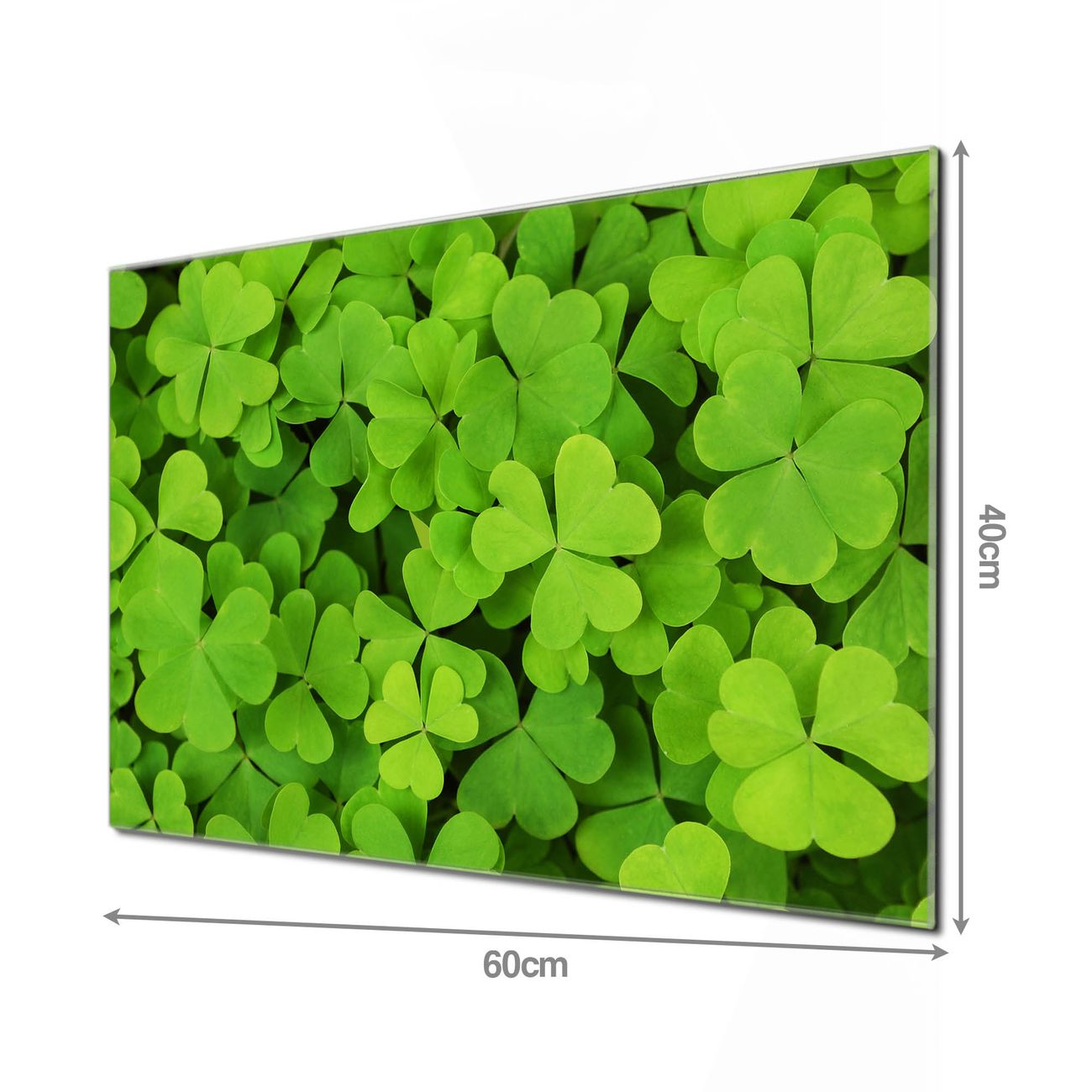 Material: 4mm Sicherheitsglas mit Metallrückwand Eigenschaften: beschreibbar, magnetisch, kratzfest Maße: 60x40x0,6cm, 3,6kg schwer Motiv Nummer 10049 Klee Zubehör: inklusive 4 Neodym-Magnete