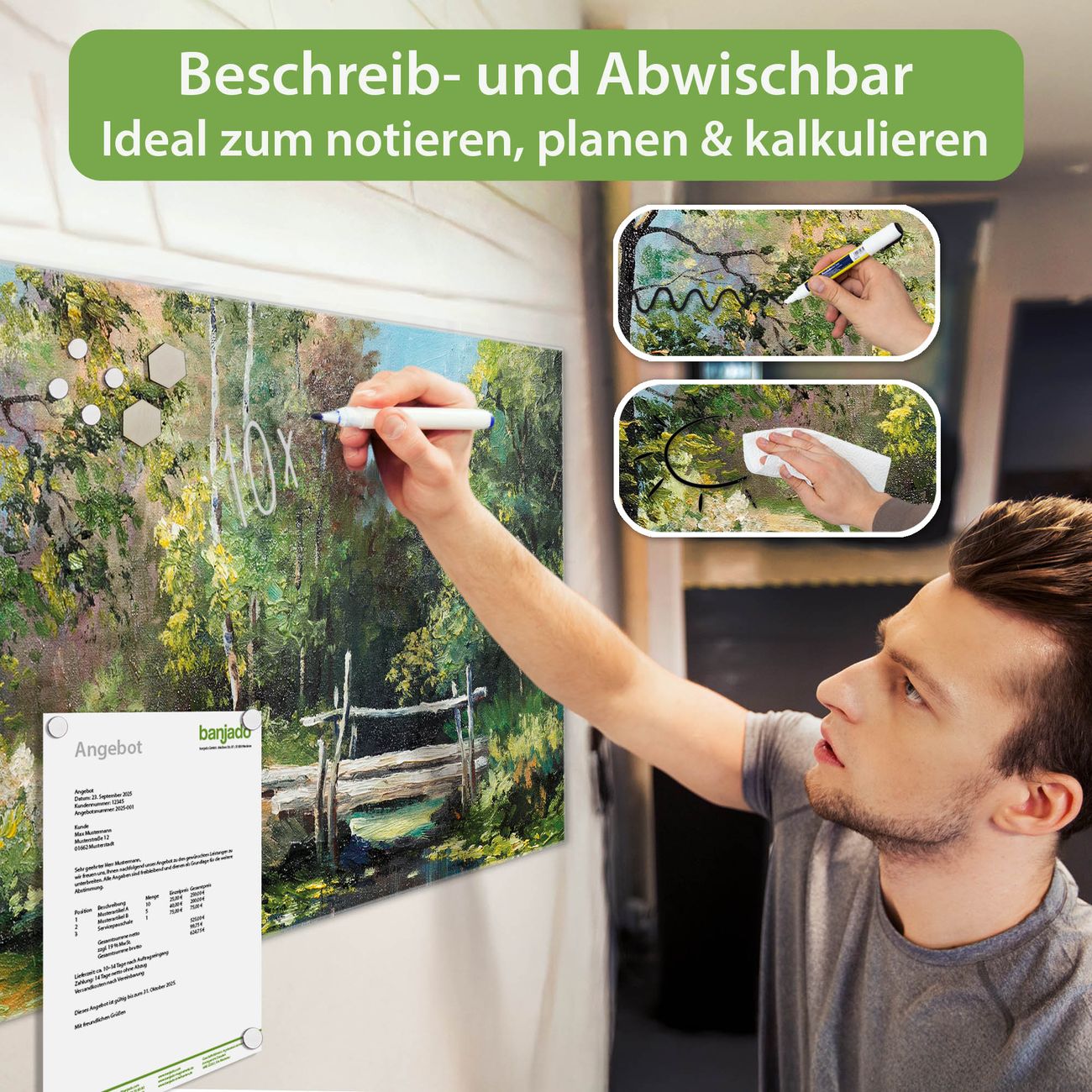 Jede Glas Magnettafel wird in unserer Werkstatt von Hand gefertigt und sorgfältig geprüft. So erhalten Sie ein echtes Qualitätsprodukt, das Funktion und Ästhetik perfekt vereint.?? Warum banjado?