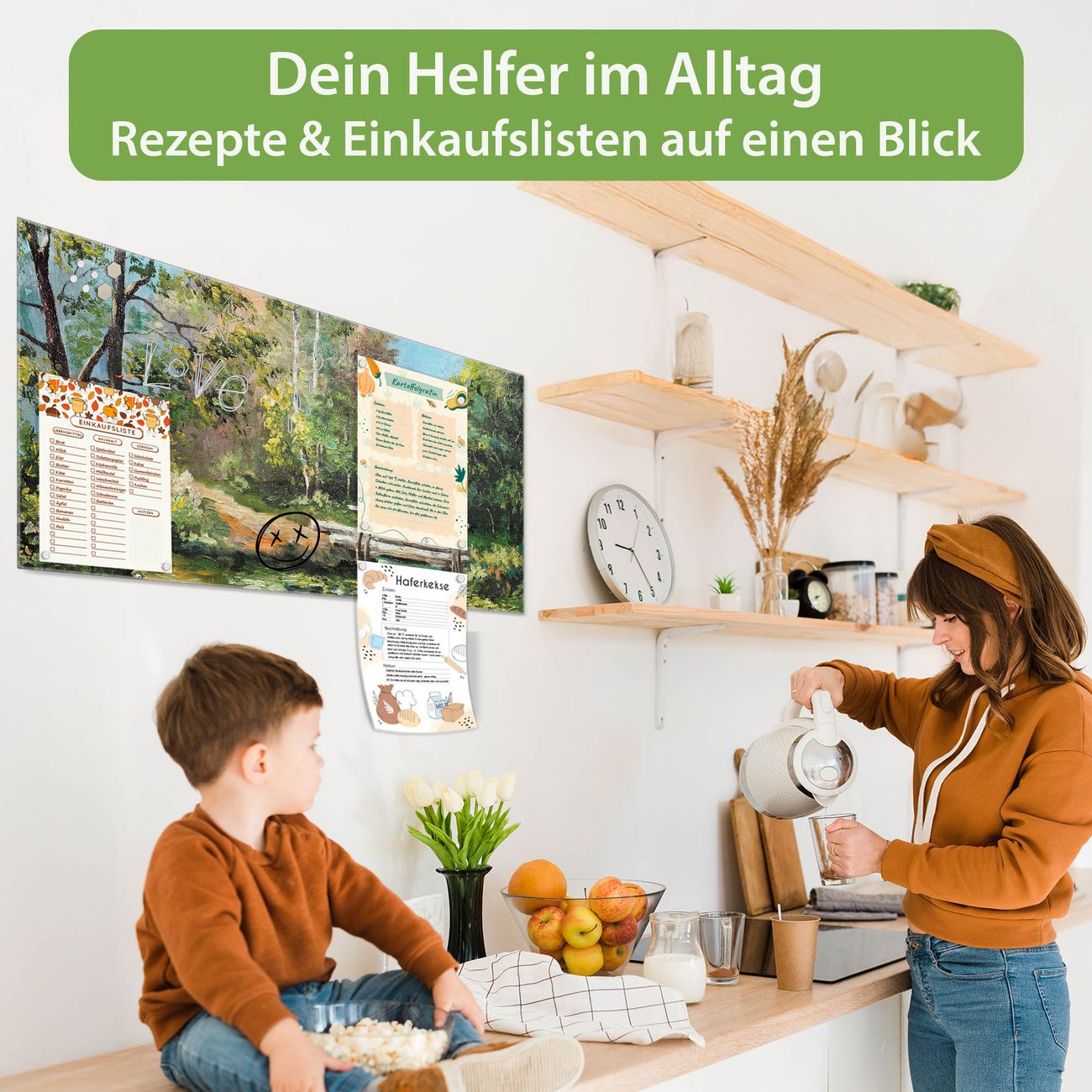 Auf der glatten Glasoberfläche lassen sich Termine, Rezepte oder Notizen ganz einfach mit Kreidestiften festhalten und rückstandslos entfernen. Starke Neodym-Magnete halten Ihre wichtigsten Erinnerungen sicher an Ort und Stelle. So entsteht Ihre ganz persönliche Ideenwand - jeden Tag neu.