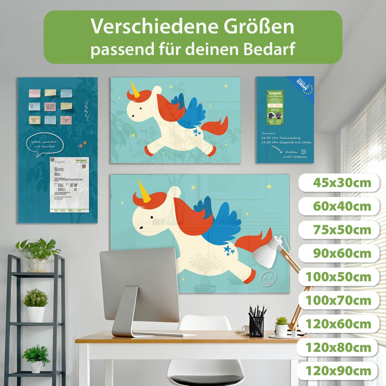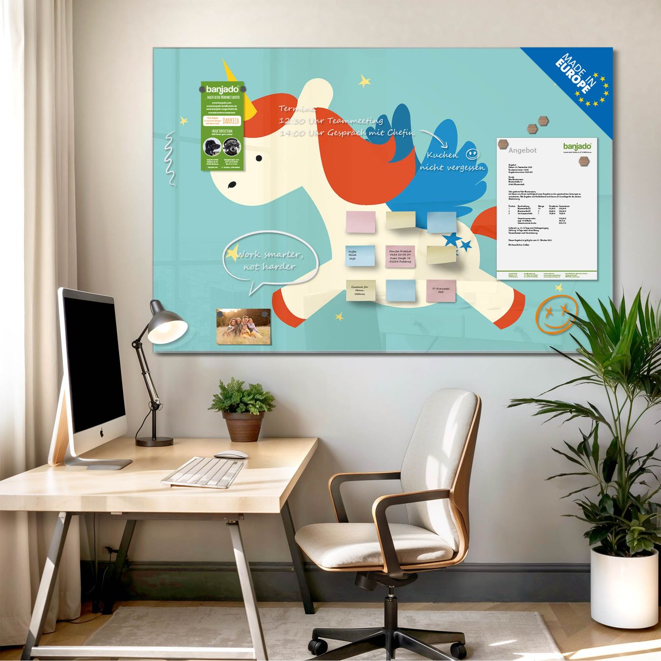 Jede Glas Magnettafel wird in unserer Werkstatt von Hand gefertigt und sorgfältig geprüft. So erhalten Sie ein echtes Qualitätsprodukt, das Funktion und Ästhetik perfekt vereint.?? Warum banjado?