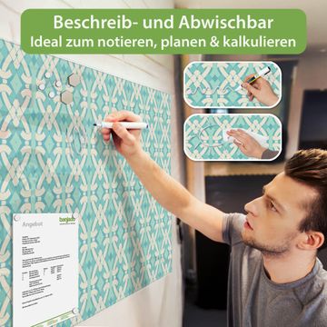 Die banjado Glas Magnettafel mit dem Motiv Motiv Knoten Türkis verbindet Funktionalität mit Stil. Sie ersetzt das Zettelchaos durch klare Strukturen und bringt dabei eine warme, natürliche Atmosphäre in Ihr Zuhause. Ob im Büro, in der Küche oder im Eingangsbereich - dieses Design-Board zieht Blicke an und sorgt für Ordnung mit Charakter.