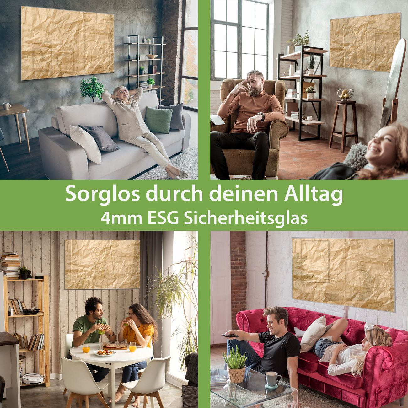 Material: 4mm Sicherheitsglas mit Metallrückwand Eigenschaften: beschreibbar, magnetisch, kratzfest Maße: 45x30x0,6cm, 2,03kg schwer Motiv Nummer 11449 Knüllpapier Zubehör: inklusive 4 Neodym-Magnete