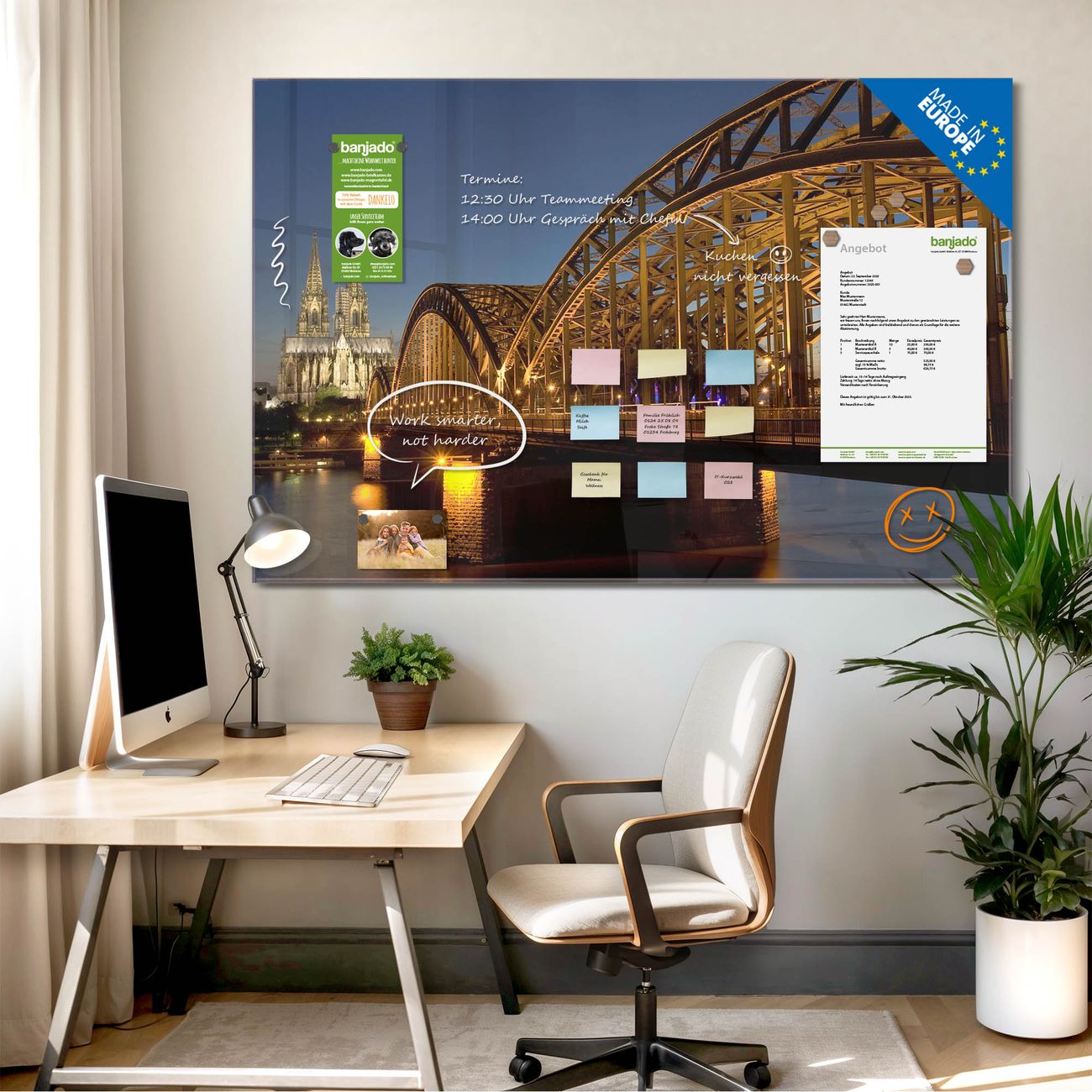 Die banjado Glas Magnettafel mit dem Motiv Motiv Köln verbindet Funktionalität mit Stil. Sie ersetzt das Zettelchaos durch klare Strukturen und bringt dabei eine warme, natürliche Atmosphäre in Ihr Zuhause. Ob im Büro, in der Küche oder im Eingangsbereich - dieses Design-Board zieht Blicke an und sorgt für Ordnung mit Charakter.
