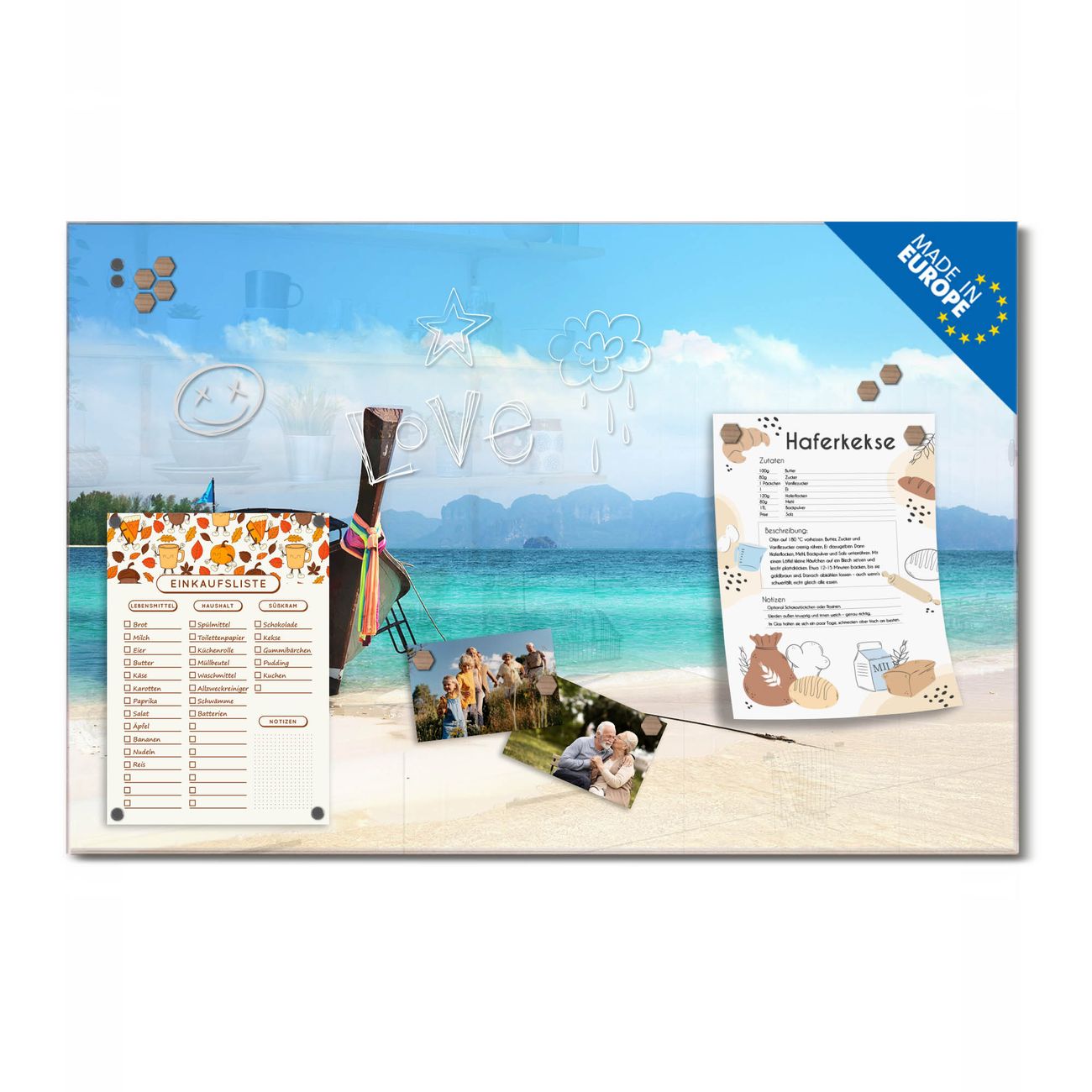 Die banjado Glas Magnettafel mit dem Motiv Motiv Koh Poda verbindet Funktionalität mit Stil. Sie ersetzt das Zettelchaos durch klare Strukturen und bringt dabei eine warme, natürliche Atmosphäre in Ihr Zuhause. Ob im Büro, in der Küche oder im Eingangsbereich - dieses Design-Board zieht Blicke an und sorgt für Ordnung mit Charakter.