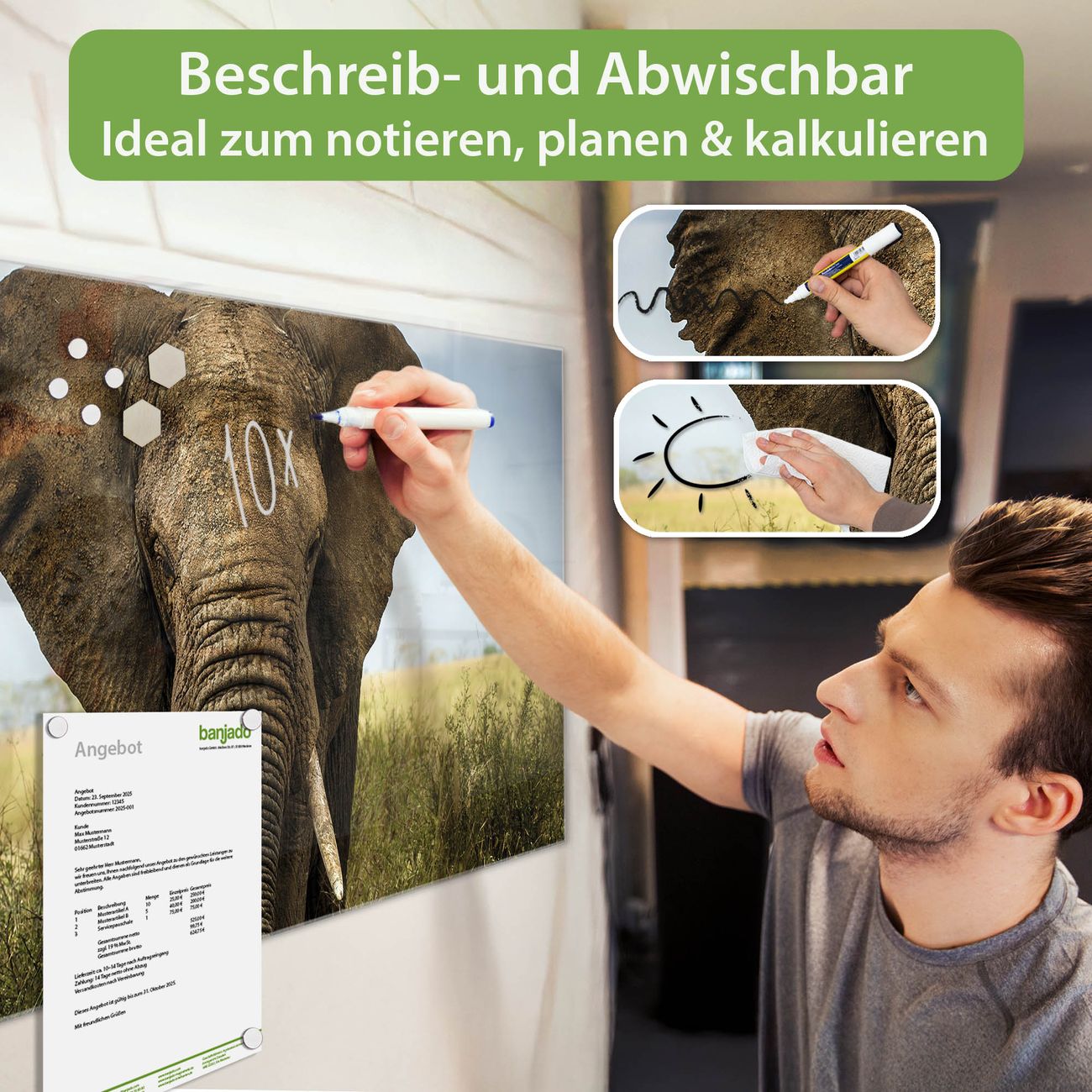 Material: 4mm Sicherheitsglas mit Metallrückwand Eigenschaften: beschreibbar, magnetisch, kratzfest Maße: 120x60x0,6cm, 10,80kg schwer Motiv Nummer 12375 Korbinian Zubehör: inklusive 4 Neodym-Magnete