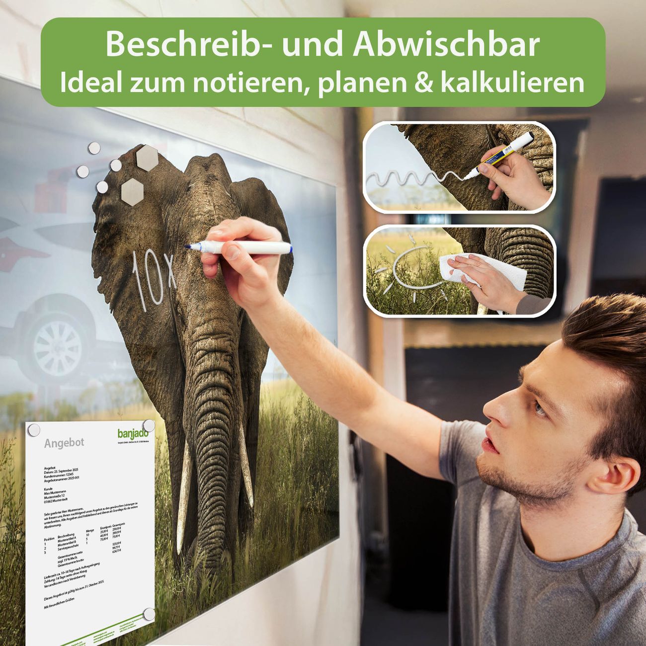 Bitte beachten Sie, dass ausschliessliche spezielle Magnete an der Glastafel haften. Wir empfehlen banjado Neodym Magnete, diese sind durch uns auf Wirksamkeit geprüft.