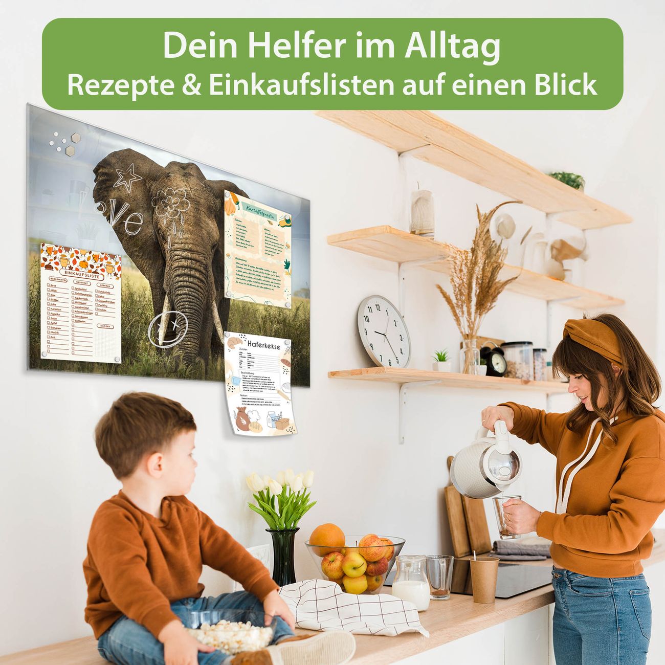 Auf der glatten Glasoberfläche lassen sich Termine, Rezepte oder Notizen ganz einfach mit Kreidestiften festhalten und rückstandslos entfernen. Starke Neodym-Magnete halten Ihre wichtigsten Erinnerungen sicher an Ort und Stelle. So entsteht Ihre ganz persönliche Ideenwand - jeden Tag neu.