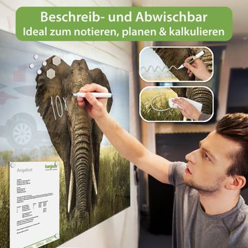 Material: 4mm Sicherheitsglas mit Metallrückwand Eigenschaften: beschreibbar, magnetisch, kratzfest Maße: 75x50x0,6cm, 5,63kg schwer Motiv Nummer 12375 Korbinian Zubehör: inklusive 4 Neodym-Magnete