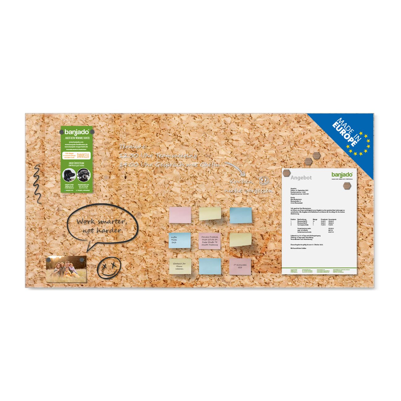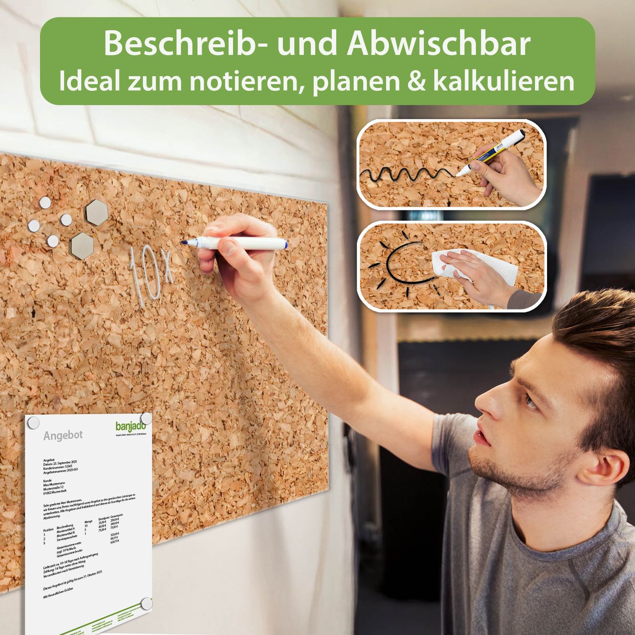 Jede Glas Magnettafel wird in unserer Werkstatt von Hand gefertigt und sorgfältig geprüft. So erhalten Sie ein echtes Qualitätsprodukt, das Funktion und Ästhetik perfekt vereint.?? Warum banjado?