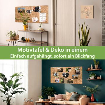 Material: 4mm Sicherheitsglas mit Metallrückwand Eigenschaften: beschreibbar, magnetisch, kratzfest Maße: 100x50x0,6cm, 7,50kg schwer Motiv Nummer 11264 Kork Zubehör: inklusive 4 Neodym-Magnete