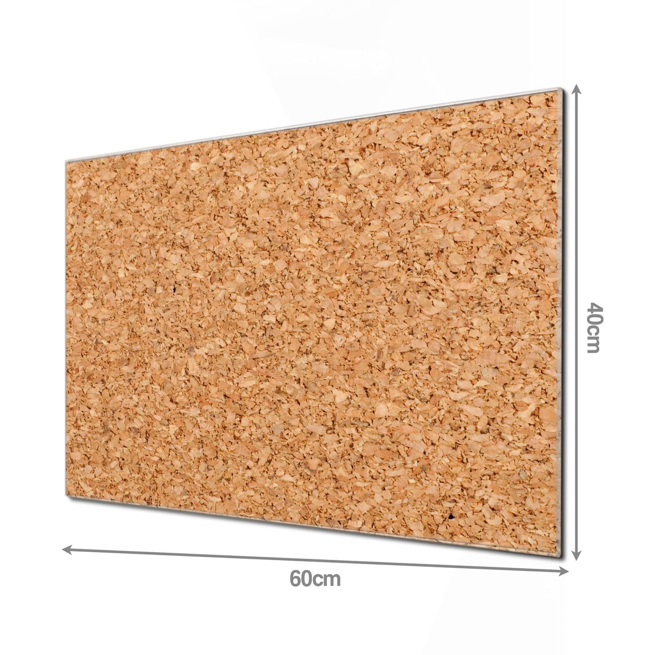 Material: 4mm Sicherheitsglas mit Metallrückwand Eigenschaften: beschreibbar, magnetisch, kratzfest Maße: 60x40x0,6cm, 3,6kg schwer Motiv Nummer 11264 Kork Zubehör: inklusive 4 Neodym-Magnete