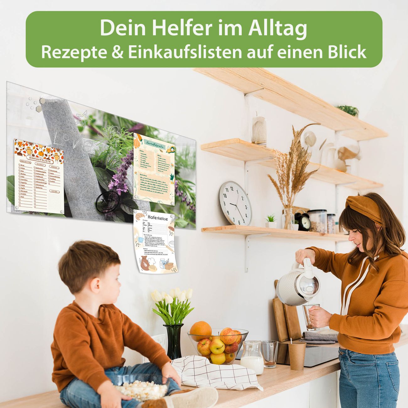 Ein Stück Design, das Ihren Alltag organisiert. Schreiben, heften, inspirieren - alles an einem Ort. Qualität, die man spürt. Montage leicht gemacht. Handwerk mit Herz - veredelt in Sachsen. Einzigartiges Design mit Motiv Motiv Kräuter Beschreibbare Glasoberfläche, leicht zu reinigen Starke Magnetkraft durch Stahlrückwand Inklusive 4 Neodym-Magneten Flexible Montageoptionen Handveredelt in Sachsen - Qualität, die bleibt
