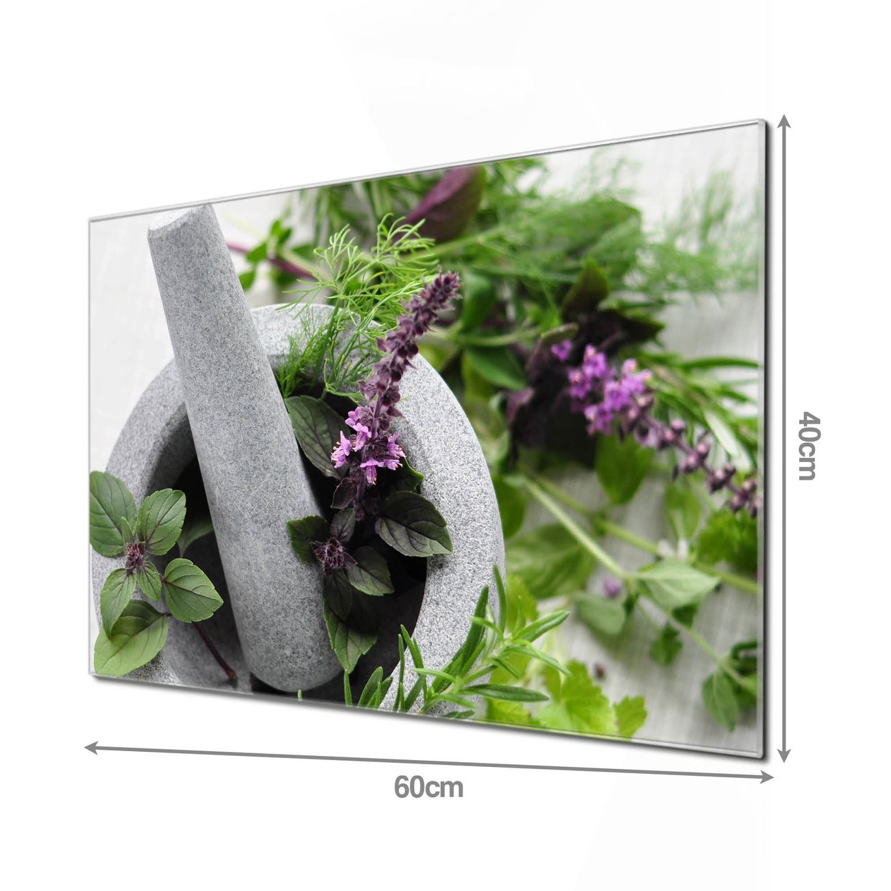 Material  4mm Sicherheitsglas mit Metallrückwand Eigenschaften  beschreibbar, magnetisch, kratzfest Maße  60x40x0,6cm, 3,6kg schwer Motiv  Nummer 10151 Kräuter Zubehör  inklusive 4 Neodym-Magnete