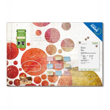Material: 4mm Sicherheitsglas mit Metallrückwand Eigenschaften: beschreibbar, magnetisch, kratzfest Maße: 120x80x0,6cm, 14,40kg schwer Motiv Nummer 10367 Kreise Zubehör: inklusive 4 Neodym-Magnete