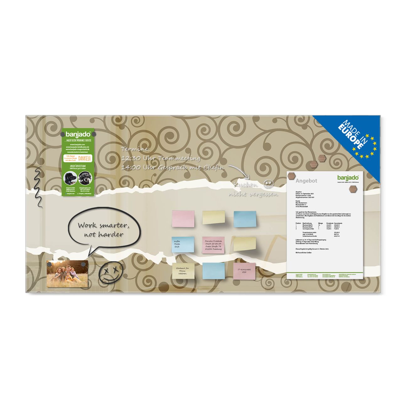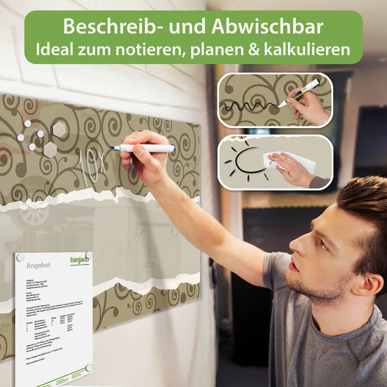 Die banjado Glas Magnettafel mit dem Motiv Motiv Kringel verbindet Funktionalität mit Stil. Sie ersetzt das Zettelchaos durch klare Strukturen und bringt dabei eine warme, natürliche Atmosphäre in Ihr Zuhause. Ob im Büro, in der Küche oder im Eingangsbereich - dieses Design-Board zieht Blicke an und sorgt für Ordnung mit Charakter.