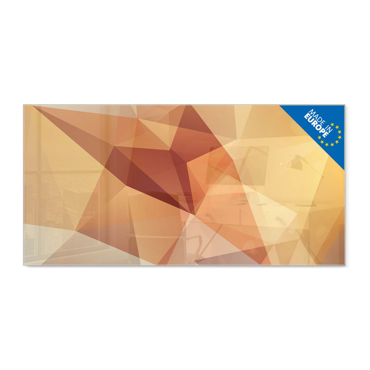 Material: 4mm Sicherheitsglas mit Metallrückwand Eigenschaften: beschreibbar, magnetisch, kratzfest Maße: 110x55x0,6cm, 9,08kg schwer Motiv Nummer 12169 Kristall Zubehör: inklusive 4 Neodym-Magnete