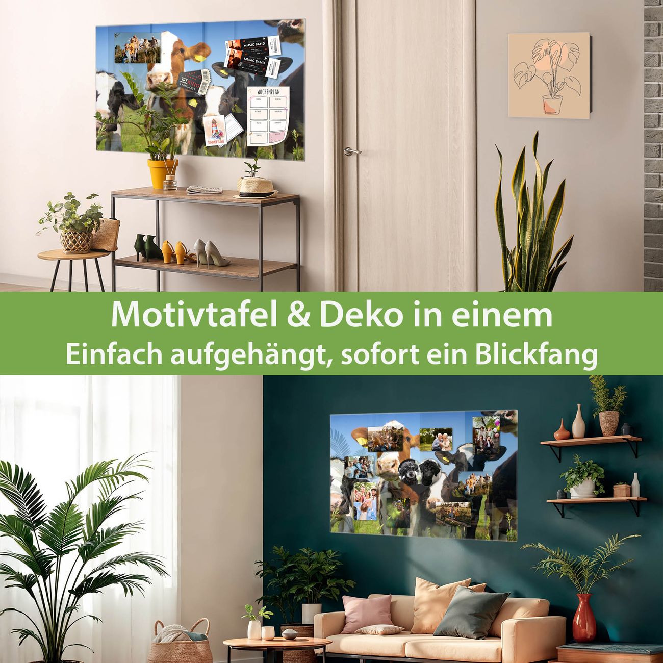 Die banjado Glas Magnettafel mit dem Motiv Motiv Kühe verbindet Funktionalität mit Stil. Sie ersetzt das Zettelchaos durch klare Strukturen und bringt dabei eine warme, natürliche Atmosphäre in Ihr Zuhause. Ob im Büro, in der Küche oder im Eingangsbereich - dieses Design-Board zieht Blicke an und sorgt für Ordnung mit Charakter.