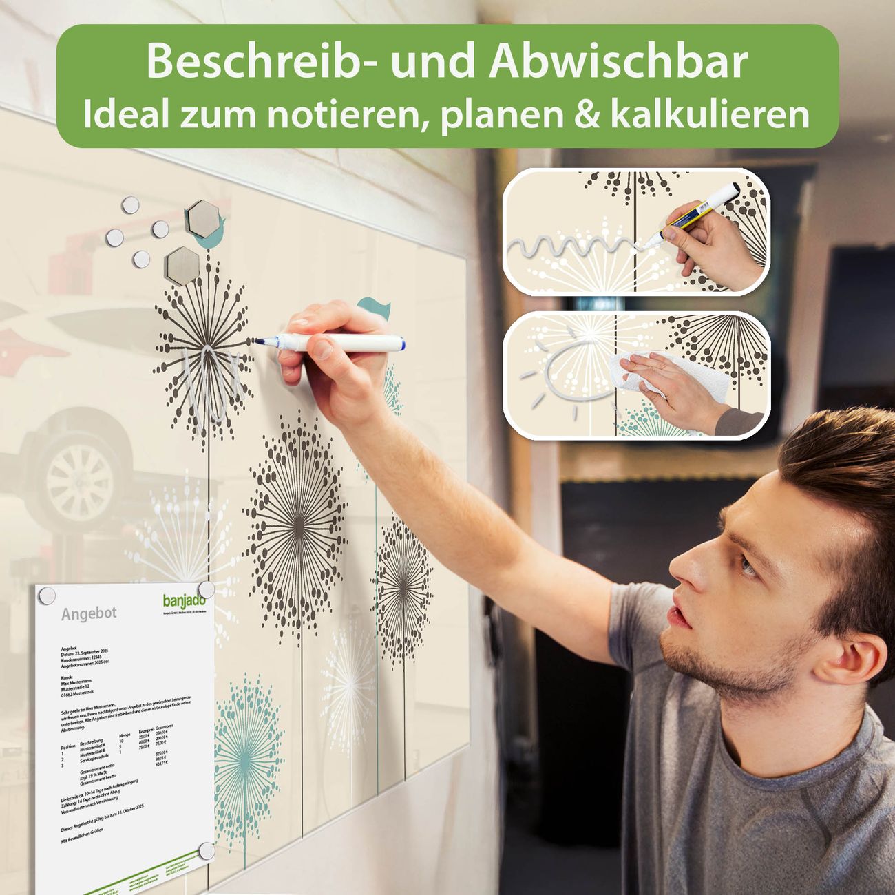 Bitte beachten Sie, dass ausschliessliche spezielle Magnete an der Glastafel haften. Wir empfehlen banjado Neodym Magnete, diese sind durch uns auf Wirksamkeit geprüft.