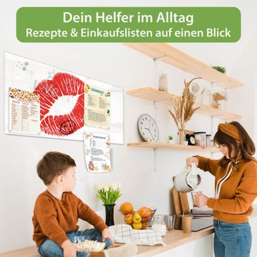 Auf der glatten Glasoberfläche lassen sich Termine, Rezepte oder Notizen ganz einfach mit Kreidestiften festhalten und rückstandslos entfernen. Starke Neodym-Magnete halten Ihre wichtigsten Erinnerungen sicher an Ort und Stelle. So entsteht Ihre ganz persönliche Ideenwand - jeden Tag neu.