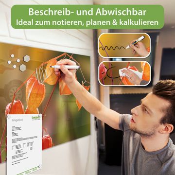 Die banjado Glas Magnettafel mit dem Motiv Motiv Lampionblume verbindet Funktionalität mit Stil. Sie ersetzt das Zettelchaos durch klare Strukturen und bringt dabei eine warme, natürliche Atmosphäre in Ihr Zuhause. Ob im Büro, in der Küche oder im Eingangsbereich - dieses Design-Board zieht Blicke an und sorgt für Ordnung mit Charakter.
